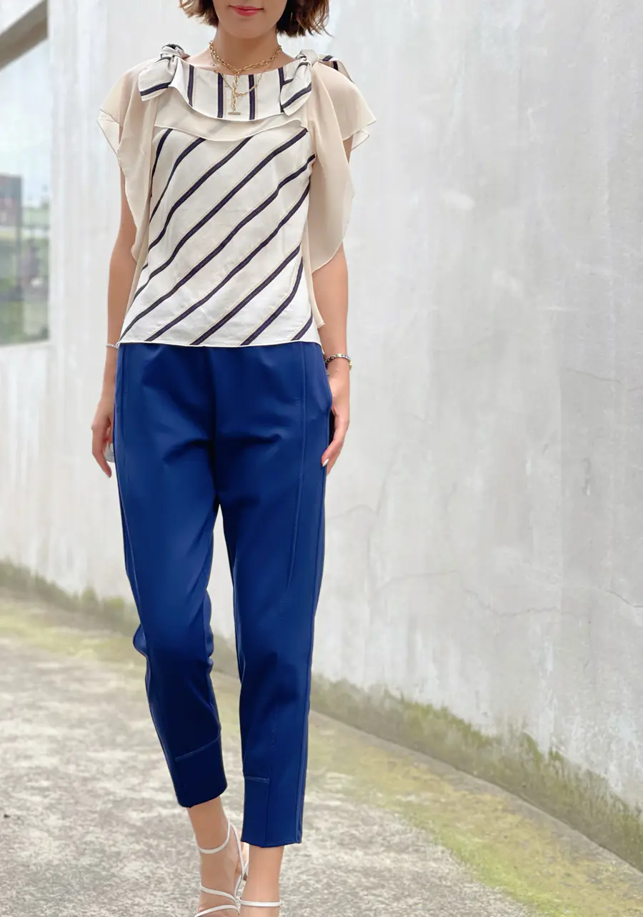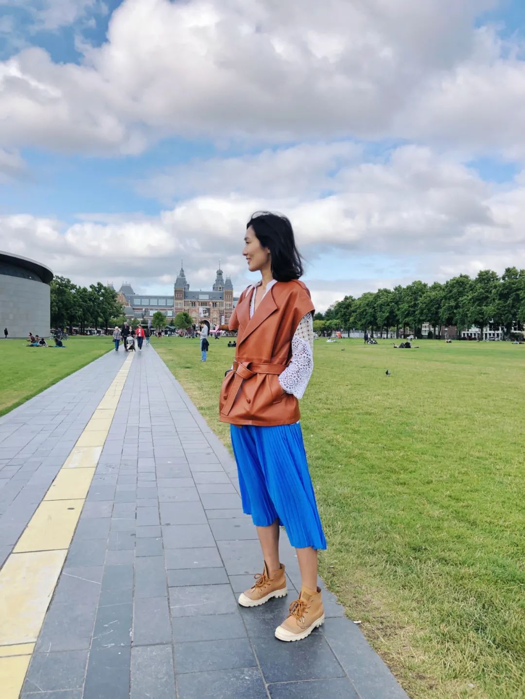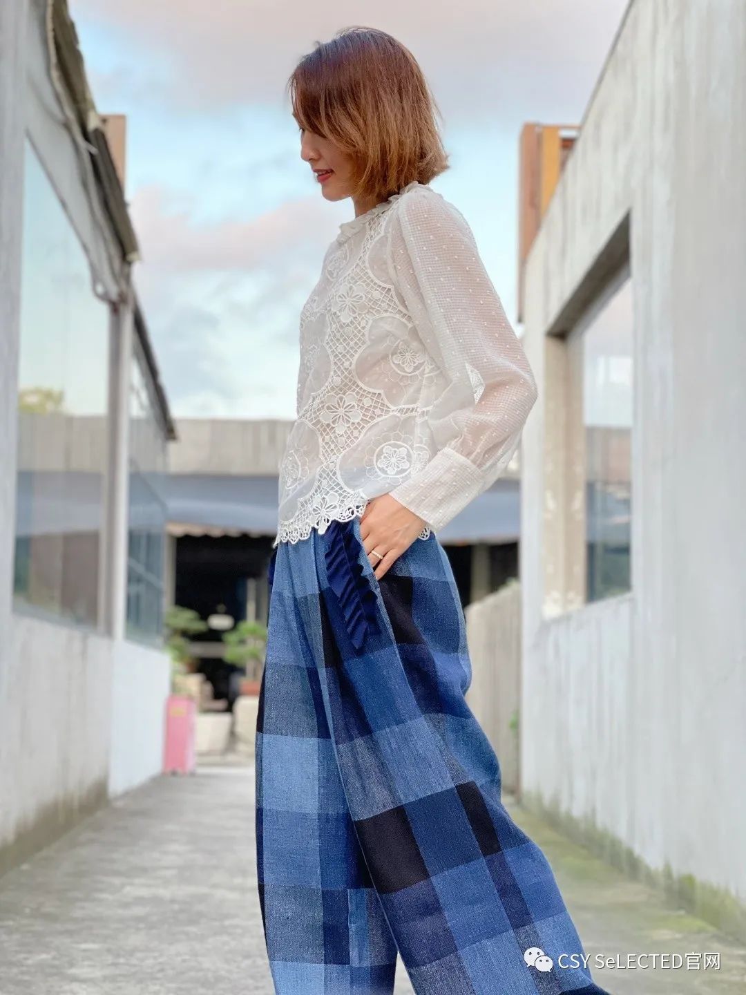 蓝色+白色系的配色非常适合爽朗的早秋时节,也许是因为加了一层蓝天白云的大自然滤镜,给蓝白配色的组合增加了天然的纯净和纯粹感,让穿着者看起来更柔和宁静。