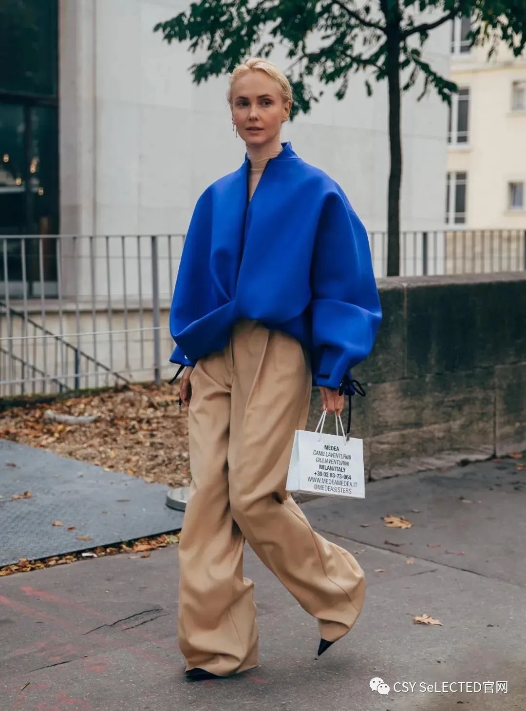 经典蓝,质感沉稳大方,利落干练,不挑肤色。不管是作为主色出场,还是跟其他颜色搭配,比如搭配黄色、黑色等等,都是高级又有气场的单品。