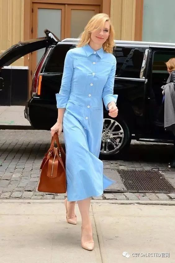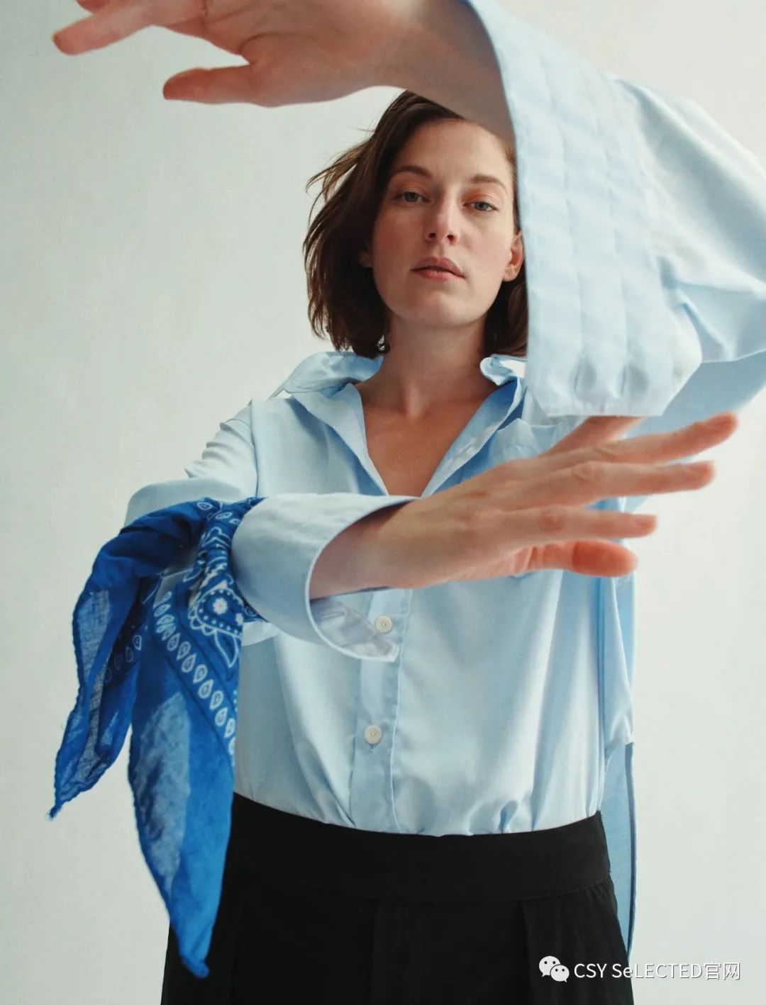 蓝色对肤色有很好的提亮作用,蓝色根据饱和度与明亮度的深浅被划分成多种类型,其中低饱和度的浅蓝色最是温柔干净,例如冰湖蓝、婴儿蓝、或者雾霾蓝等等,即使是大面积搭配也不会产生审美疲劳。