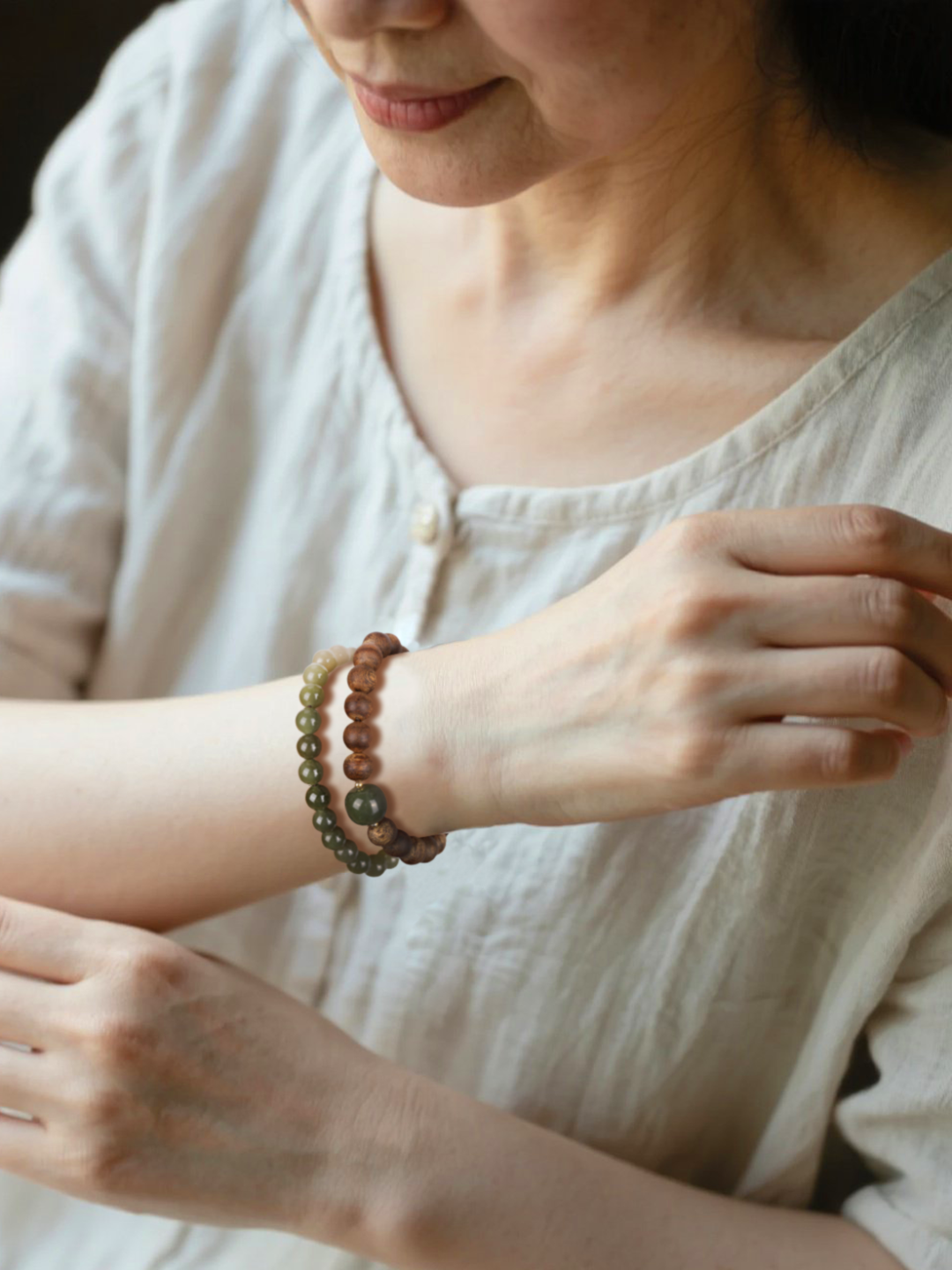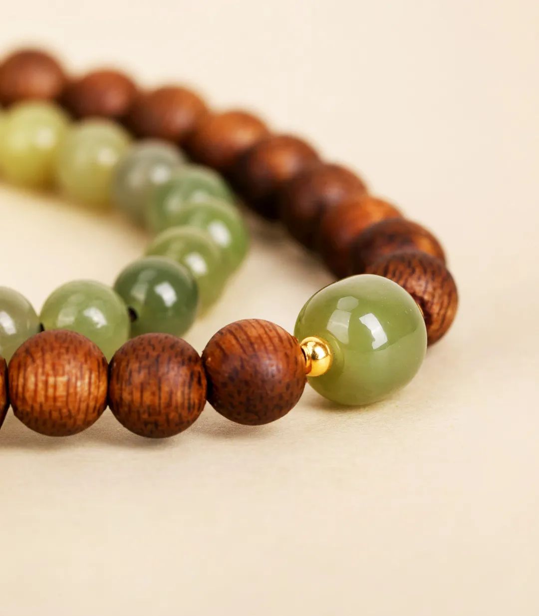 每一颗玉珠都经过严格筛选,确保质地细腻,越戴越润