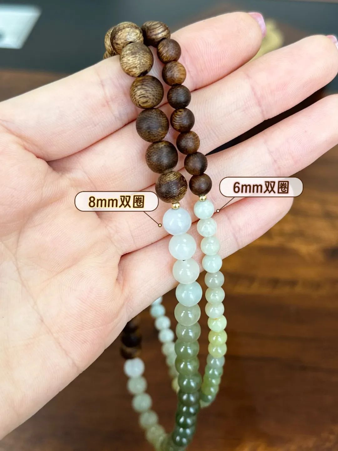 珠子尺寸6mm更精致小巧,戴上感觉更优雅、灵动;