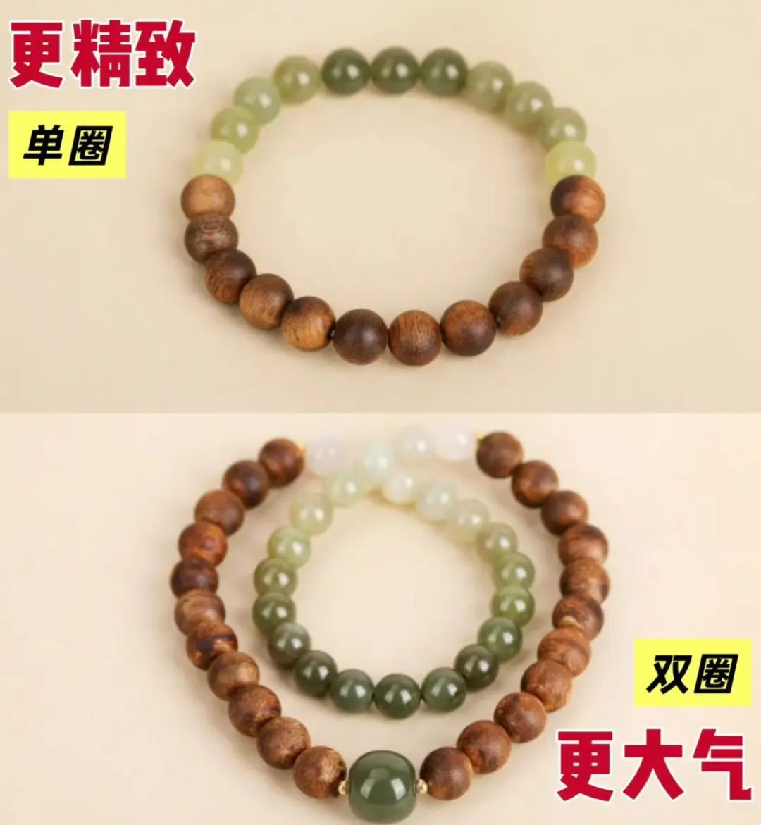 款式2:双圈有主珠,更大气沉稳,更适合35以上的家人们
