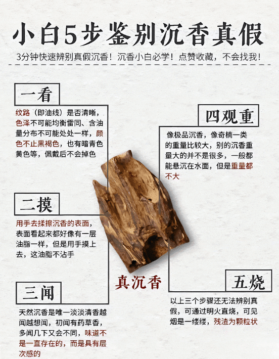 其实鉴别沉香只需要一看、二摸、三闻、四观重、五烧方法来鉴别好坏