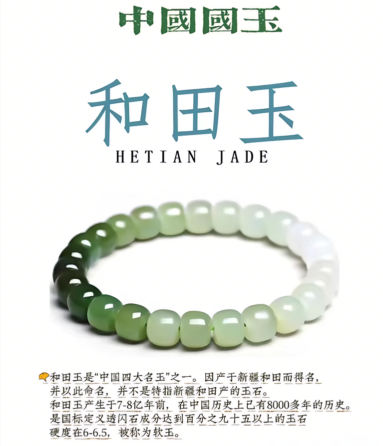 这条手串里的和田玉珠选自优质新疆和田玉