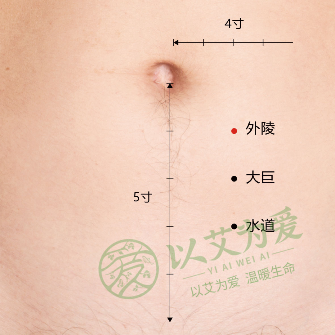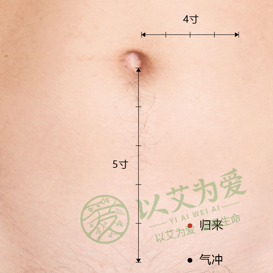 归来:下腹部,当脐中下4寸,当前正中线旁开2寸。