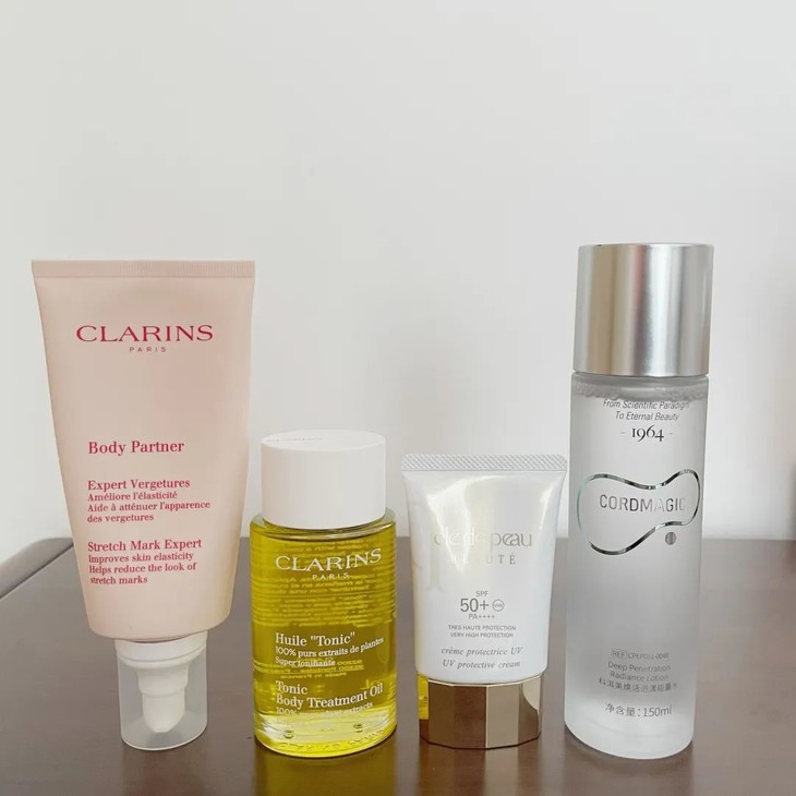 但整个孕期到哺乳期的4个月,除了大量的身体护肤产品,护肤品基本就保持了2件,一样是我万年爱的cpb防晒乳,一样就是用空瓶好几次的科洱美护肤水~
