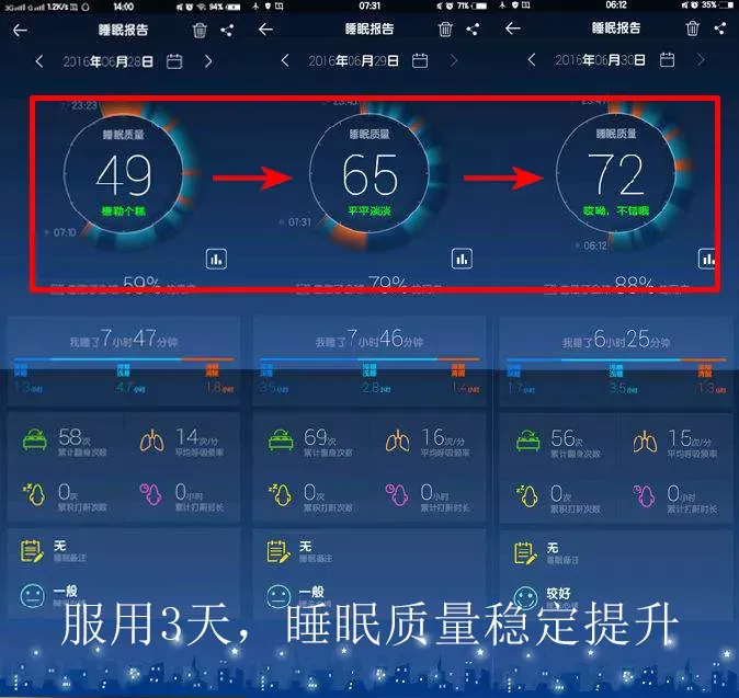 一位经常失眠的朋友,用手机记录下了自己服用蜂王浆冻干多肽片后的睡眠,睡眠质量是一天比一天的好。