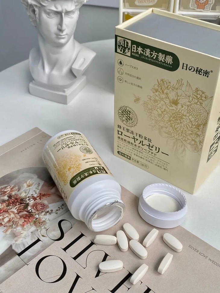 蜂王浆冻干多肽片,其中的蜂王浆、人参直接为你肌肤注入“青春因子”,由内而外滋养,改善内分泌,坚持服用,惊人变化看得见!