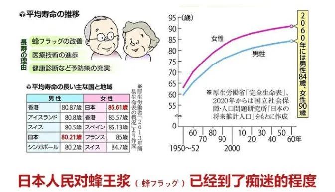 在日本人的认知中“蜂王浆=长寿健康”,连日本人自己都感慨,日本能成为长寿之国,蜂王浆至少占到一半功劳。