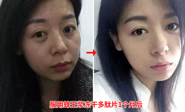 同时吃了不到一瓶的蜂王浆冻干多肽片,不仅气色好了很多,脸上的黄斑暗疮也消了,一下年轻7、8岁!