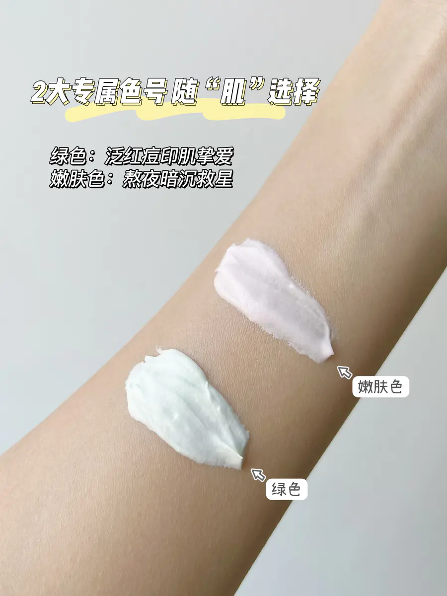 双色可选,绿色更适合泛红有瑕疵的肌肤,嫩肤色更适合熬夜暗沉的肌肤