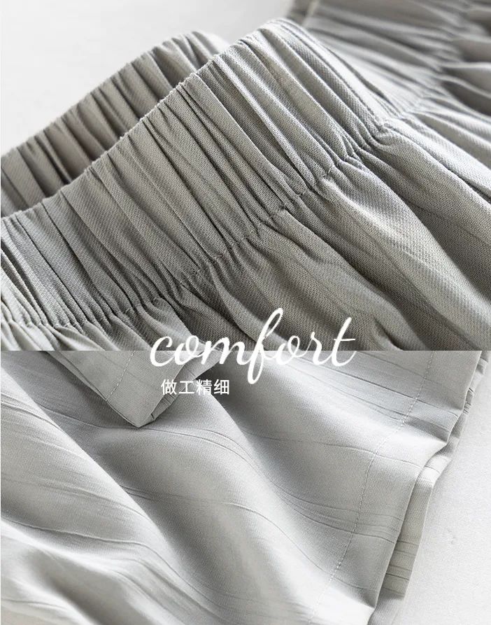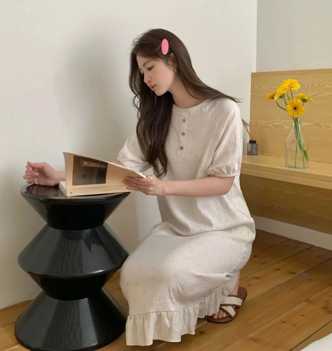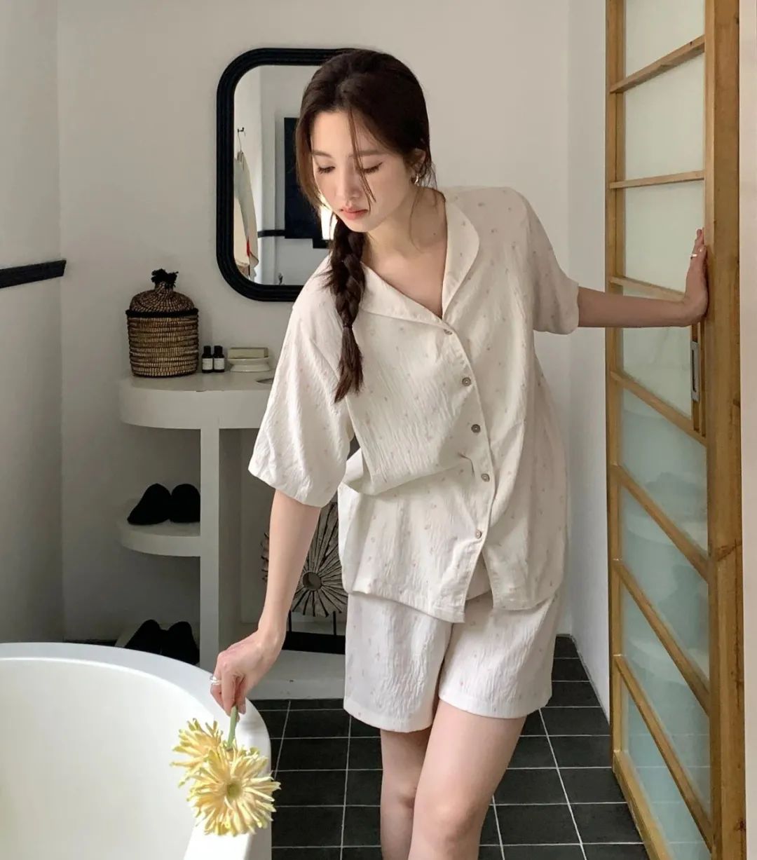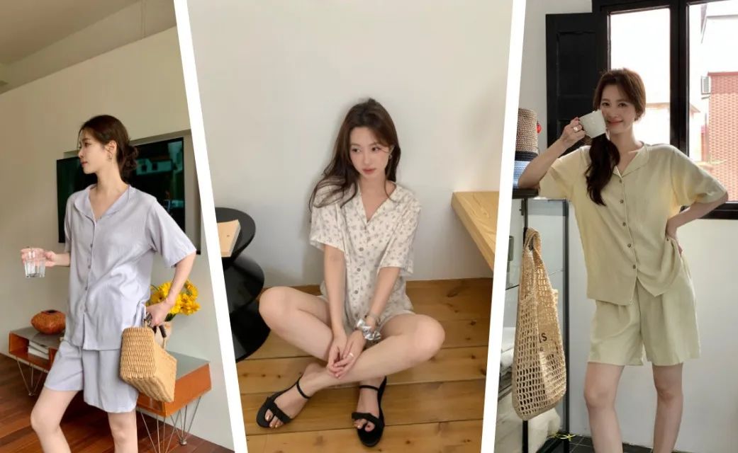 不用担心大腿和臀部的地方,因为长时间坐着而出现尴尬的褶皱。高腰的松紧设计,可以很好的藏住腹部的赘肉,无形中提高腰线拉长腿部线条,视觉上会更显腿长更显高。裤管的长度也足足的,直接盖到脚踝,顶着大太阳出门,也不用涂防晒霜啦,省钱又省力,还能避蚊,好处太多惹!碎花睡裙是一种轻盈、浪漫且充满女性魅力的睡衣款式。这款睡裙有着清新的碎花图案和舒适的穿着体验,超级减龄,温柔可爱,轻薄透气!拿到手就会爱上了。面料亲肤柔软,穿上就不想脱下来。上面领口开的不大,中规中矩,短袖设计,不用担心自己的内衣带子是不是漏出来了。清新治愈的小碎花,把夏天的浪漫揉进了生活这些花朵图案小巧玲珑,为睡裙增添了一份优雅与浪漫。几个颜色的碎花都是简单活泼的,看着很清爽,夏天穿再合适不过,浅色系的衣服也不用担心掉色问题,根本没色可掉,放心了。裙摆宽松,随着步伐的摆动,仿佛翩翩起舞,给人一种轻盈飘逸的感觉。穿上它,仿佛就能感受到夏天的气息,让人心情愉悦,充满活力。无论是慵懒的午后,还是宁静的夜晚,结束忙碌的工作后,换上心爱的家居服,能为你带来一份温馨与浪漫。它不仅仅是一件睡裙,更是一份对生活的热爱与向往。穿上它,让自己沉浸在这份美好中,享受那份独特的甜蜜与幸福吧!不得不说,穿好看的睡衣真的能让自己心情愉悦,宅家幸福感也蹭蹭往上涨呢!正好也升温了,今年夏天这款——“夏日宅家套装”短款家居服版型是开衫纽扣型的,上身有种自然垂坠感,可以巧妙自然的遮住腰腹部肉肉,完全不会有卡肉的尴尬。裤子则是松紧腰的那种阔腿中裤,没有一点丢丢束缚感,完全放飞自我,一觉睡到自然醒,而且也不会穿腻,毕竟基础款才是yyds!这款也是小编最最最喜欢的家居服了~(已经买来穿了一星期了哈哈)这款夏季肌理感家居服,让你外出拿外卖扔垃圾也不会尴尬,成全你的慵懒,又能保持你的精致美丽。贴在肌肤上比裸睡还舒服,加上它独有的肌理纹路感,穿上给整个人的气质都加分不少。柔软丝滑像夏日的棉花糖一样,少女感爆棚,马卡龙在它面前都黯然失色。上身非常轻盈,加上它独有的肌理纹路感“小设计”,整个人气质都高级不少。这种肌理感面料使它的抗皱力也很强 ;诺!怎么揉搓都不会皱!哪怕你一直穿着它在床上打滚,也不用担心皱皱巴巴、失了质感。总共4种颜色不重样~ 快和你的姐妹一人来一套,住宿凑一块穿,敲有爱哒~