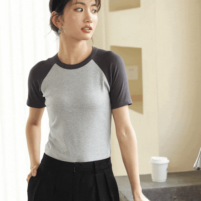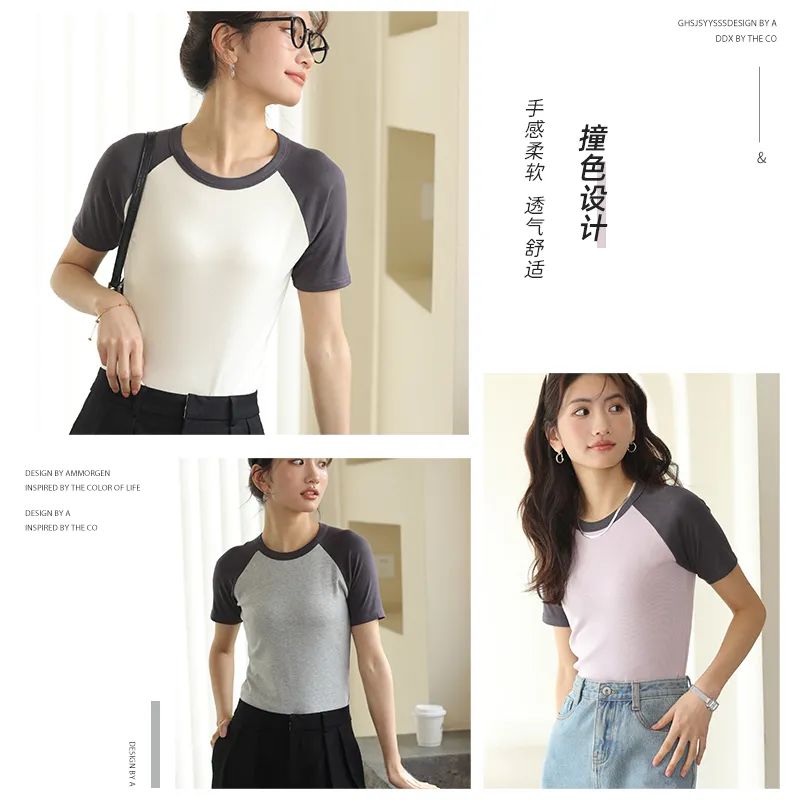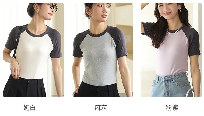 按头安利这一款【外挂T恤】——拼色短袖T ,拼色设计算是永垂不朽的经典元素吧,怎么搭配都好看~这款采用的工艺是新一代涡流纺纱技术+类空气结构,纺出紧密、光滑、毛羽少、手感好的纱线外,还使纱线具有密度高、双重结构、爽感性好、耐洗涤性好以及保湿性和膨松性好等特点。插肩袖看似平平无奇,其实是被低估的物理外挂!穿上好似显瘦的直角肩,肩宽背厚的姐妹穿纯色紧身T容易显状,换成拼色插肩袖立马就有视觉收肩效果,而且深色袖子会更显瘦。拼色插肩袖可以形成视觉上的竖块分割,让人第一眼忽略手臂和肩膀的宽度,显得人更纤细。因为大部分不运动的姐妹,肩膀都是肉肉的。即便在我们眼里很瘦的博主,插肩袖依然可以让视觉效果更上一层楼。而且这款拼色短袖,简单好搭配。下装跟上衣统一颜色会更显高显瘦。这款短袖能保证凉爽感,且服饰的包容性强,对身材和气质都不挑剔,非常值得推荐!三色可任选哦!» 02