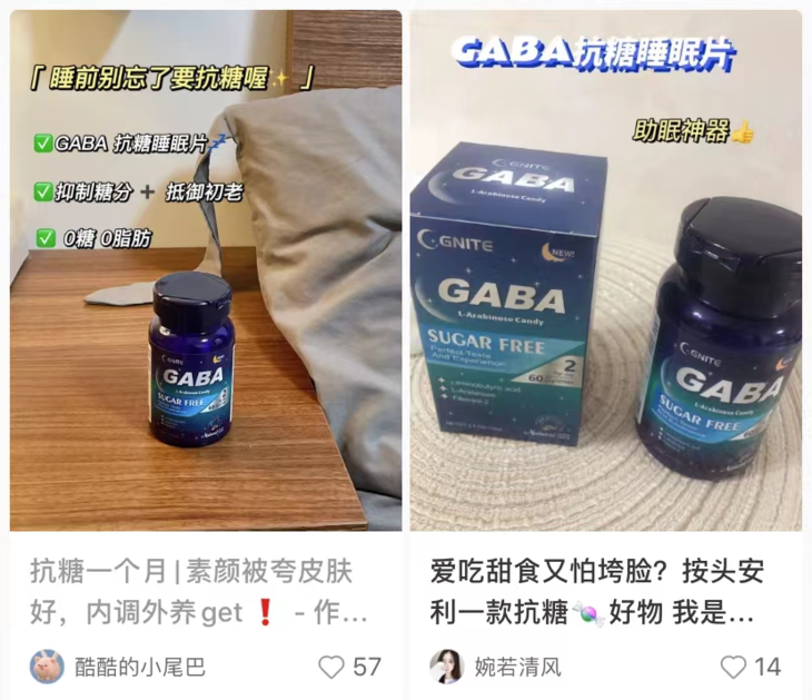 这款GNITE GABA 抗糖睡眠片引进国内后,也在某书上很火,是爱吃甜食的妹子们的天菜首选!