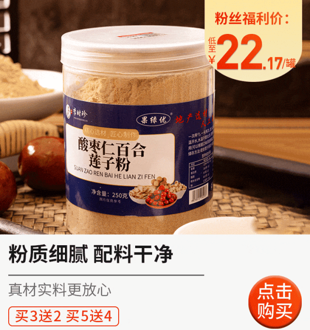 为了让配料协同发挥作用,还在配方里加入药食同源食材:百合、莲子、桂圆、茯苓!