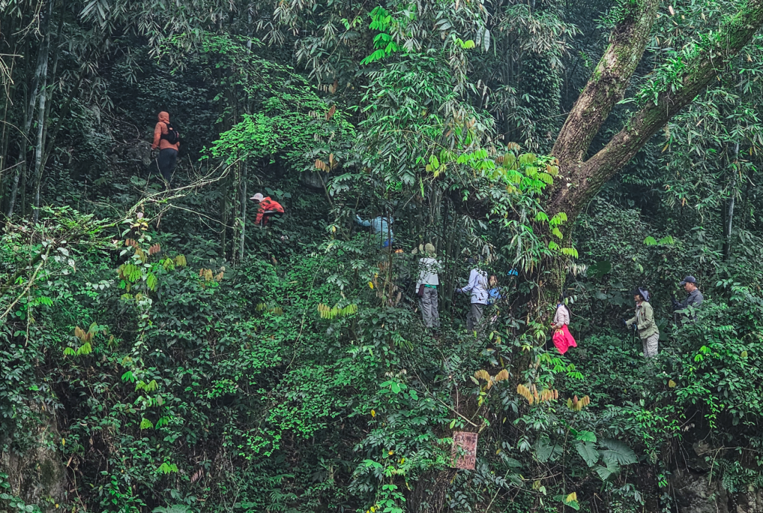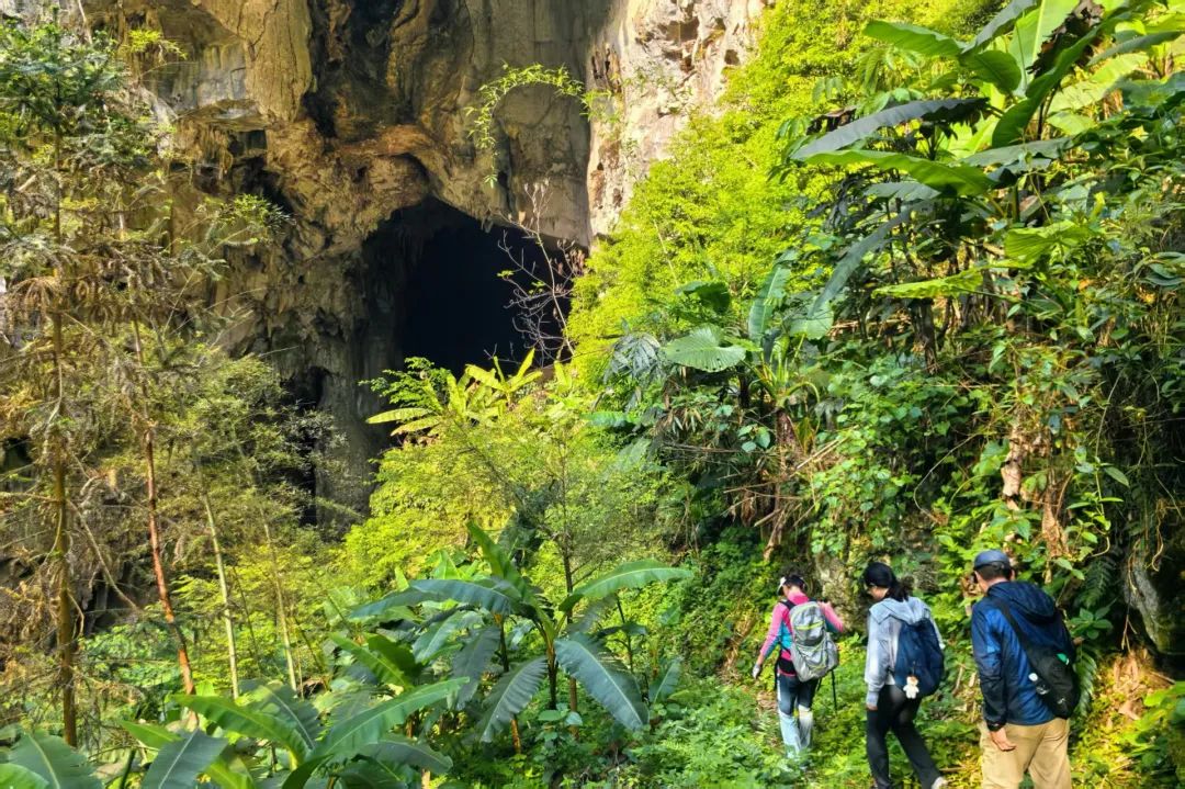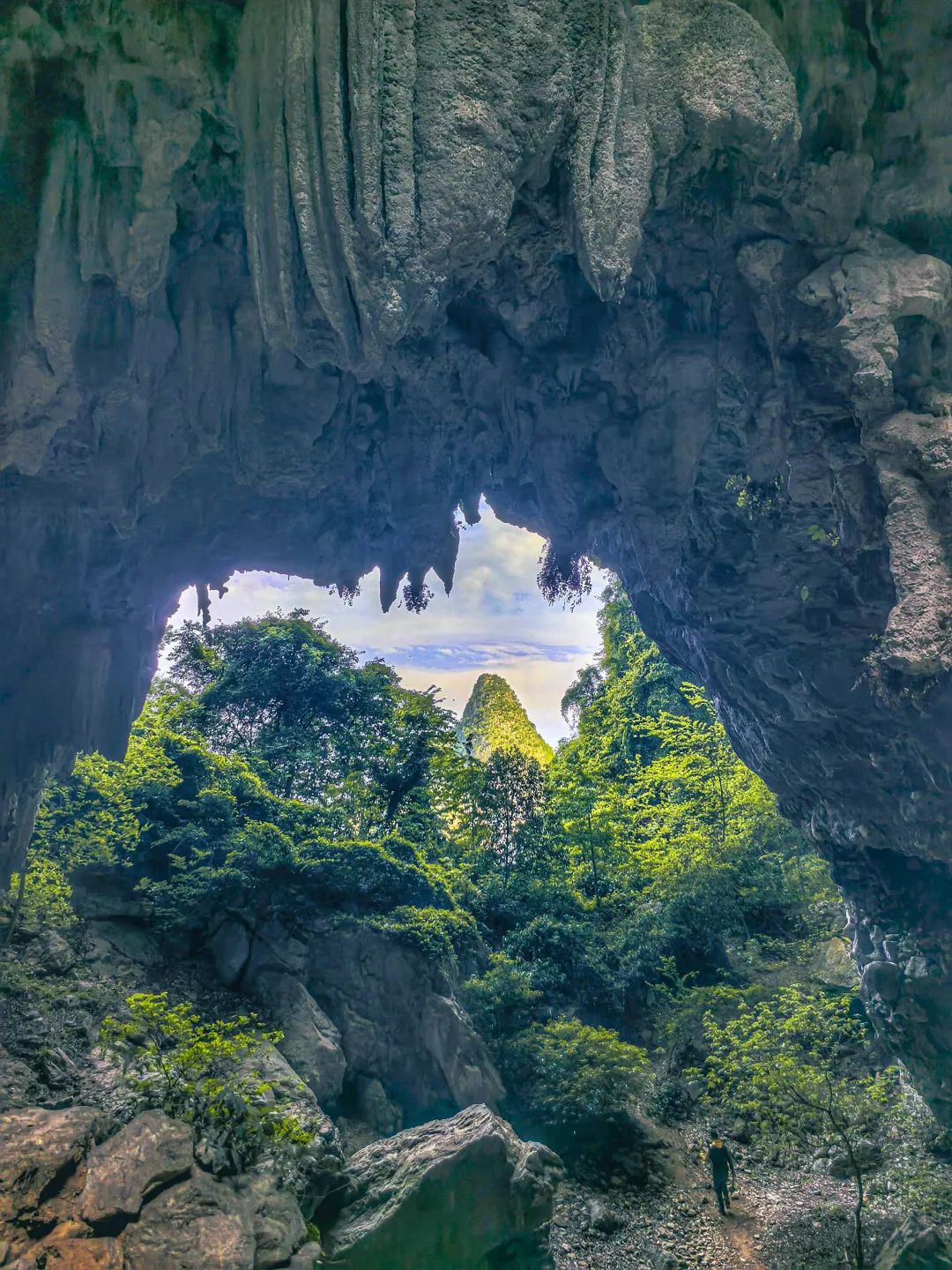 一路上,我们攀爬陡坡,穿越密林,手脚并用跨过崎岖路段,历经数小时的跋涉,终于完成穿越。南圩天坑群的壮美与神秘,深深镌刻在我的记忆中,成为一场难忘的冒险。