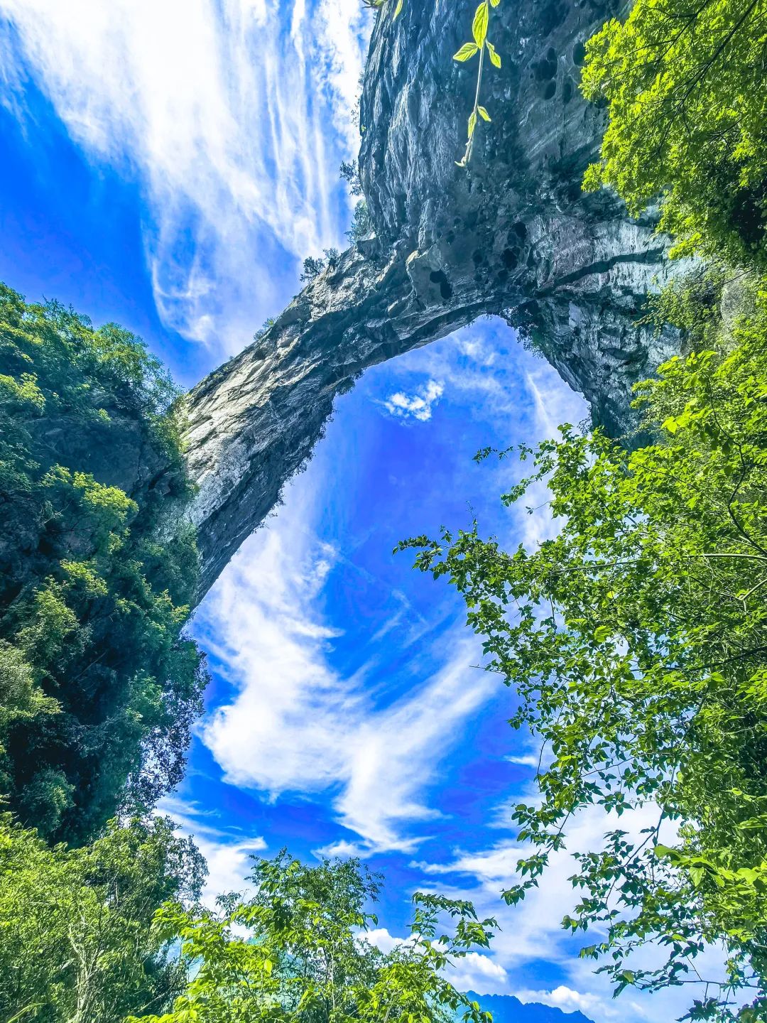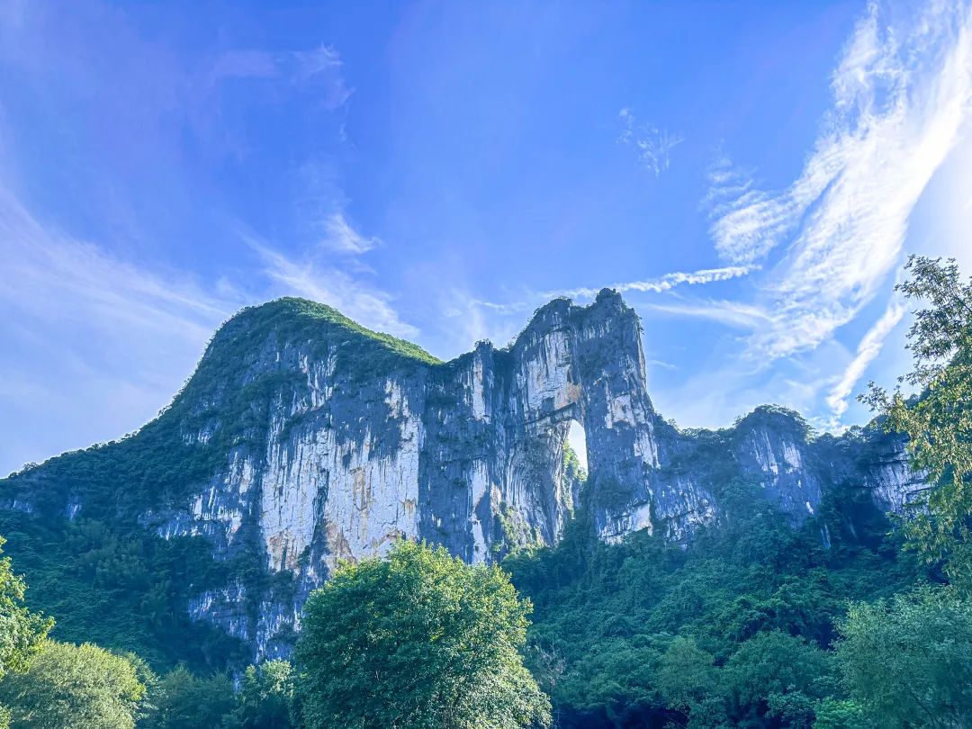 抵达目的地,喀斯特峰林巍峨耸立,云雾如纱,缠绕在奇峰之间。穿岩似一座天然拱门,古朴厚重,岩壁上的青苔记录着岁月的痕迹。穿过穿岩,碎石小径蜿蜒向前,一侧是陡峭的山壁,另一侧则是望不见底的深壑。