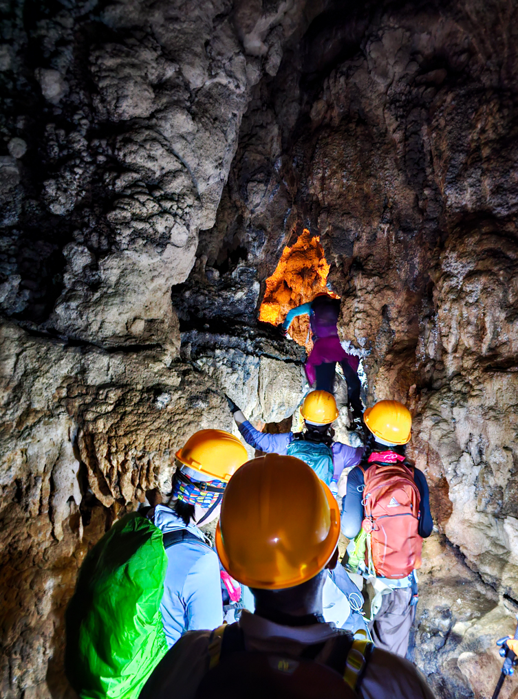 我们接连探索了三个洞穴,每当遇到狭窄的通道或是陡峭的地方,党党都会提前停下,告诉我们如何安全通过。他凭借丰富的经验,总能避开潜在的危险,带着我们顺利前行。