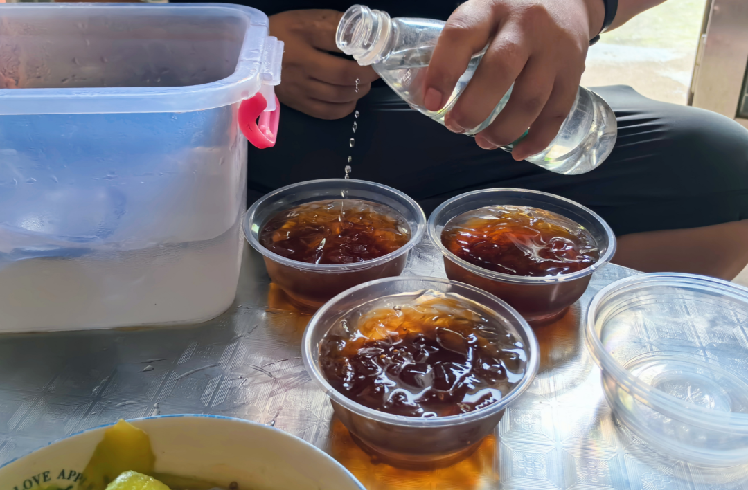 离开小岛,我们前往全家洲吃午饭。还未踏入农家小院,一股诱人的香气便扑鼻而来。饭前,每人都喝上一碗冰凉冰凉的冰粉,爽滑清甜的口感瞬间唤醒味蕾,让人食欲大增。