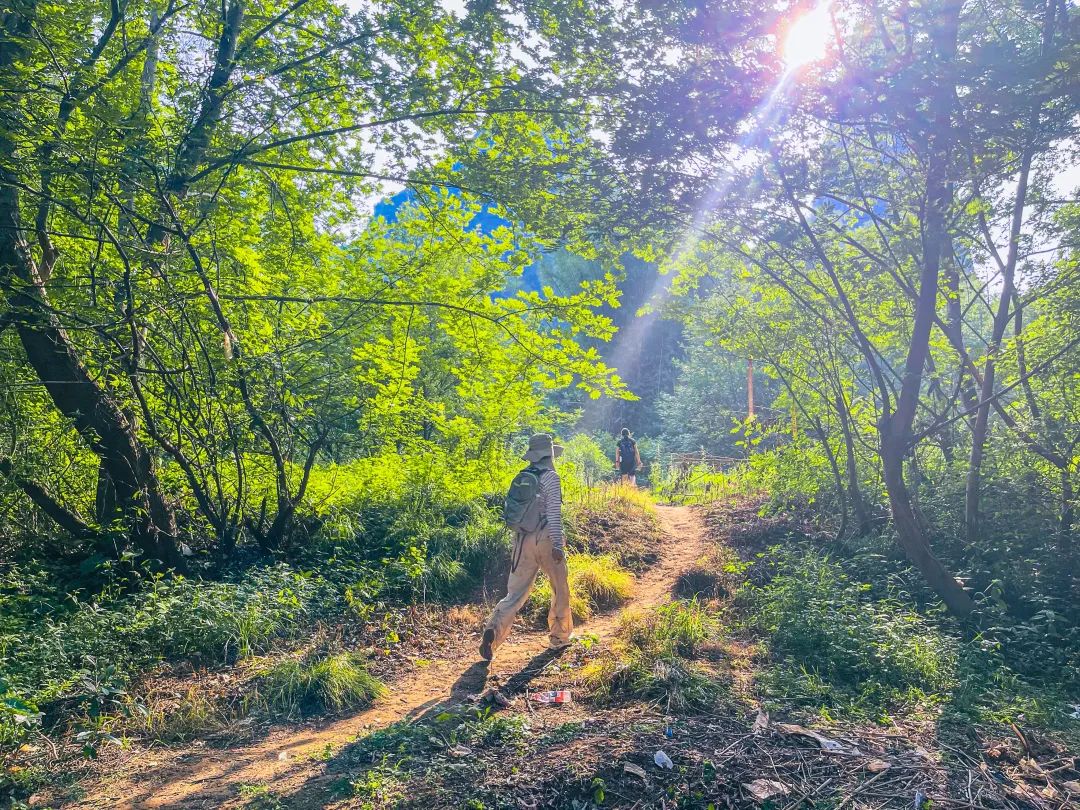 沿着蜿蜒山路向上,脚下的路忽陡忽缓,碎石与泥土交织,每一步都要谨慎落足,汗水顺着脖颈滑落,浸湿衣衫,却浇不灭探索的热情。