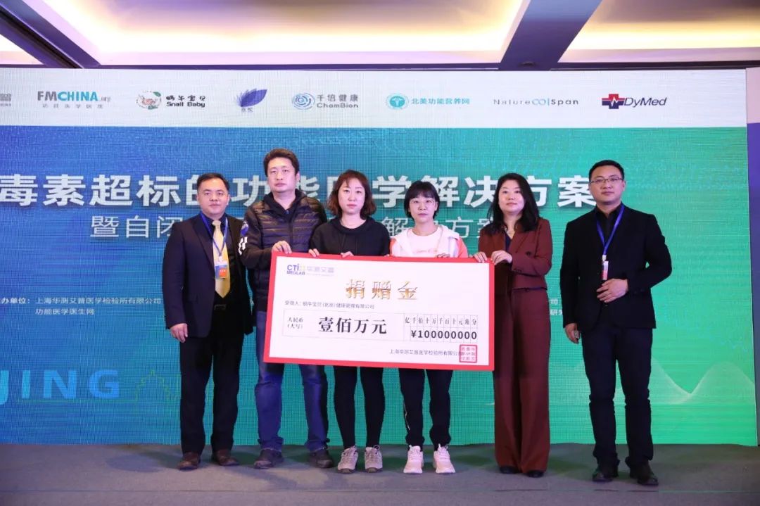 为了支持功能医学和自闭症治疗,同时为了履行上市集团的社会责任,华测艾普积极投身公益事业,于本次会议捐赠100万,全部用于支持自闭症家庭的功能医学干预。参会家长代表与华测艾普的领导、王娟教授一同合影留念。