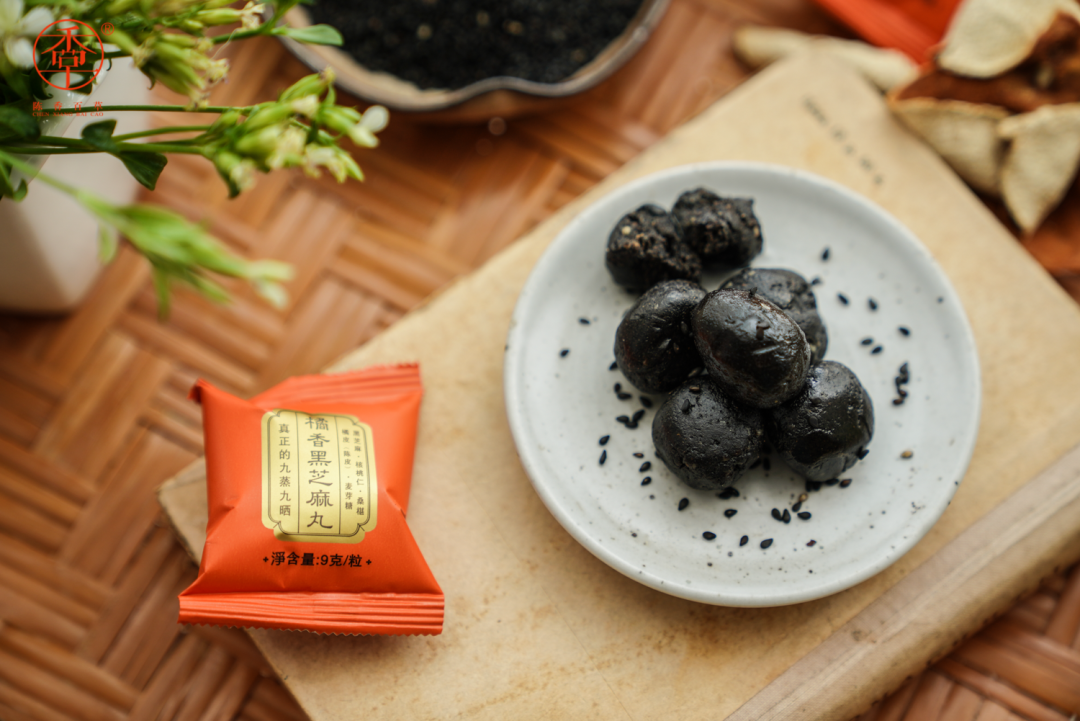 陈香百草的橘香黑芝麻丸,在古方上做了调整。在原方黑芝麻与核桃仁的基础上,加入桑椹,增加其滋补肝肾的功效,佐以陈皮健脾理气化湿,补泻平衡,不燥不腻。