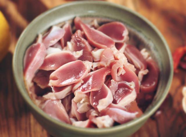 2、鸡胗腥味较大,清洗时加入白酒,腌制时加一点点面碱,能有效去腥。