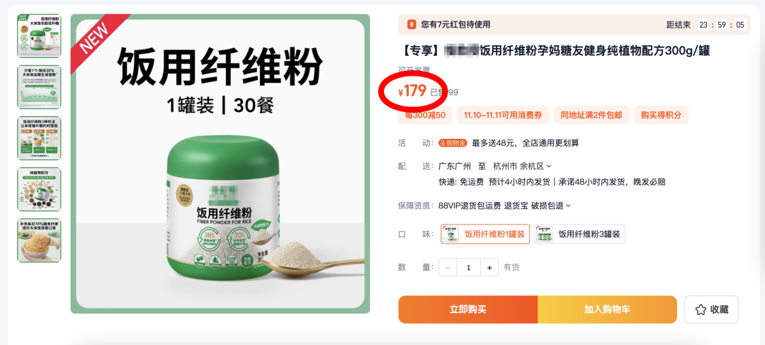 价格方面,市场上同类型的饭用纤维粉,一罐的价格都在179元,着实有点贵!
