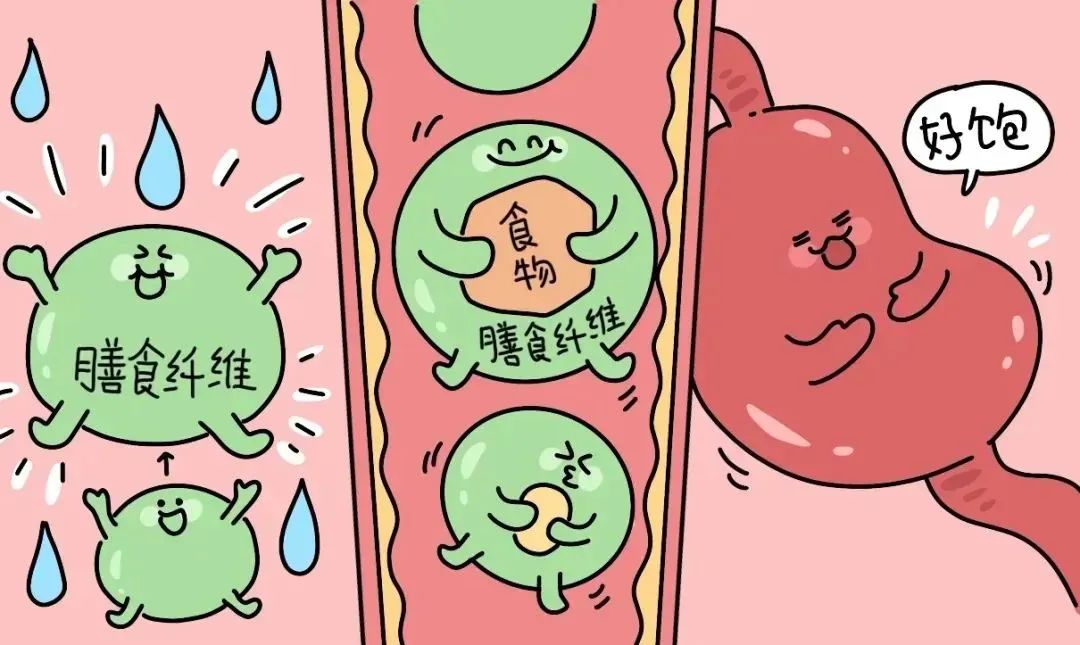 膳食纤维由于其难以被消化的特性,会在胃中吸收水分并膨胀,增加食物的体积,从而促使你获得更多的饱腹感。
