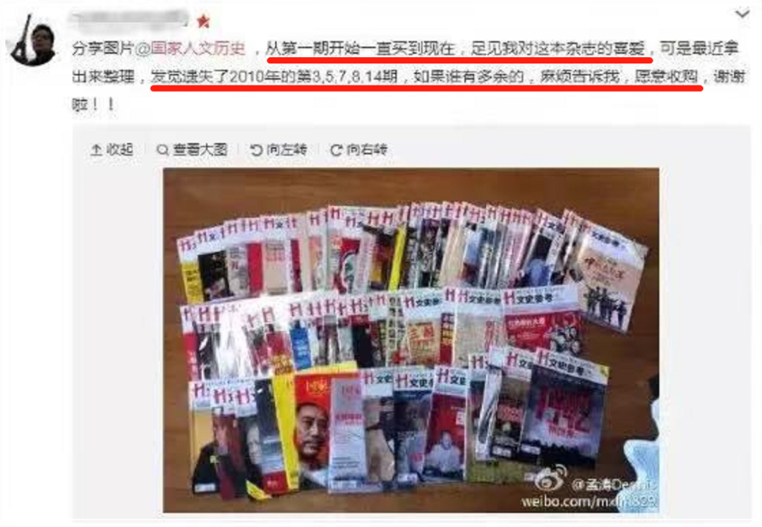 一位连续多年购买的老读者,因为错过某几期,在微博专门留言收购。