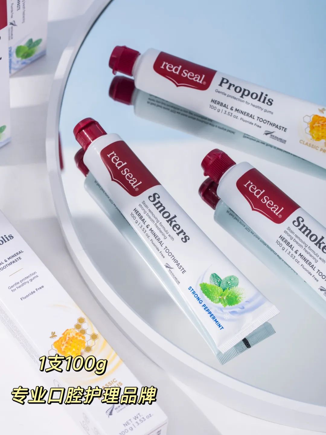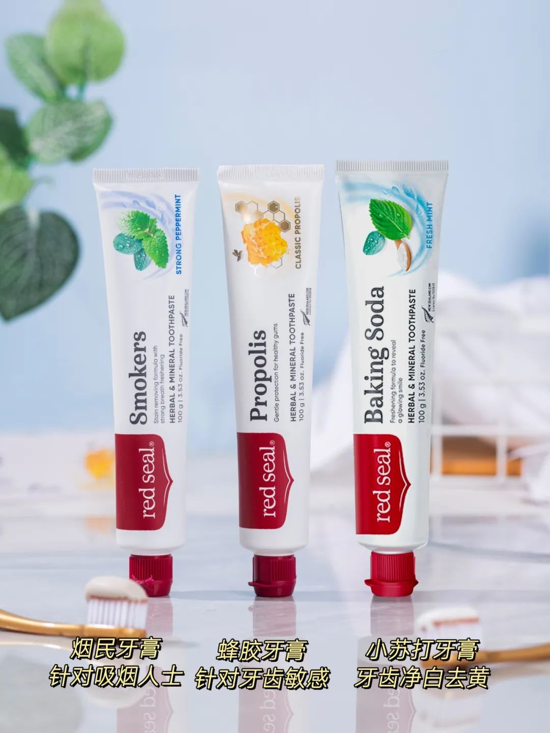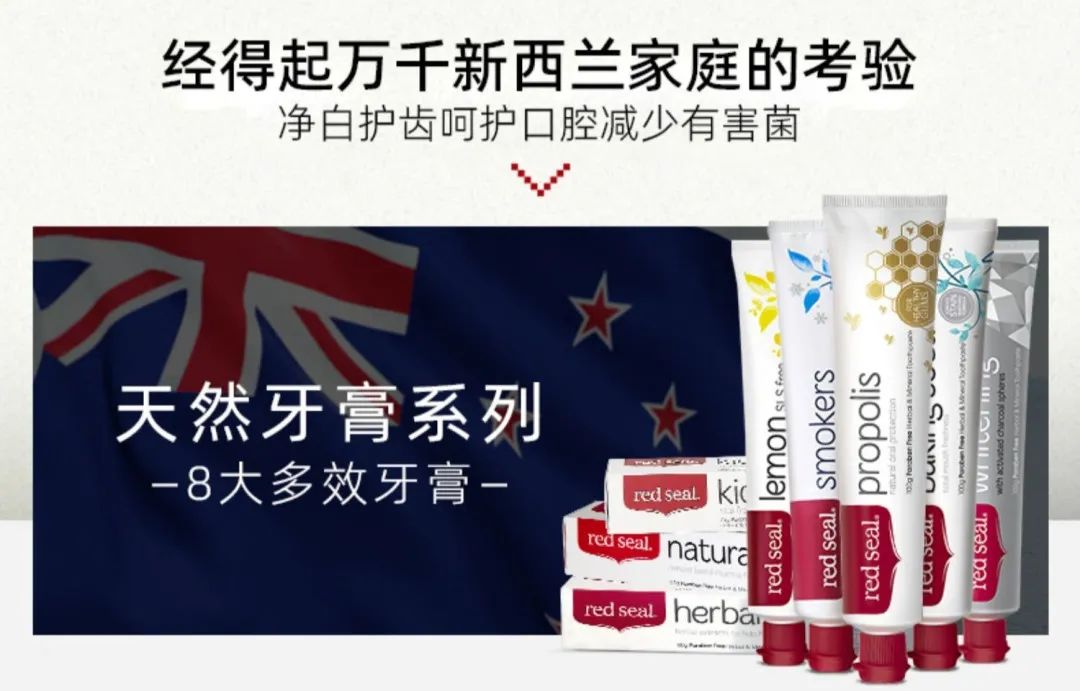 Red seal创立于1923年,注重自然牙膏,口腔健康,是新西兰本土销量较好的护理品牌。