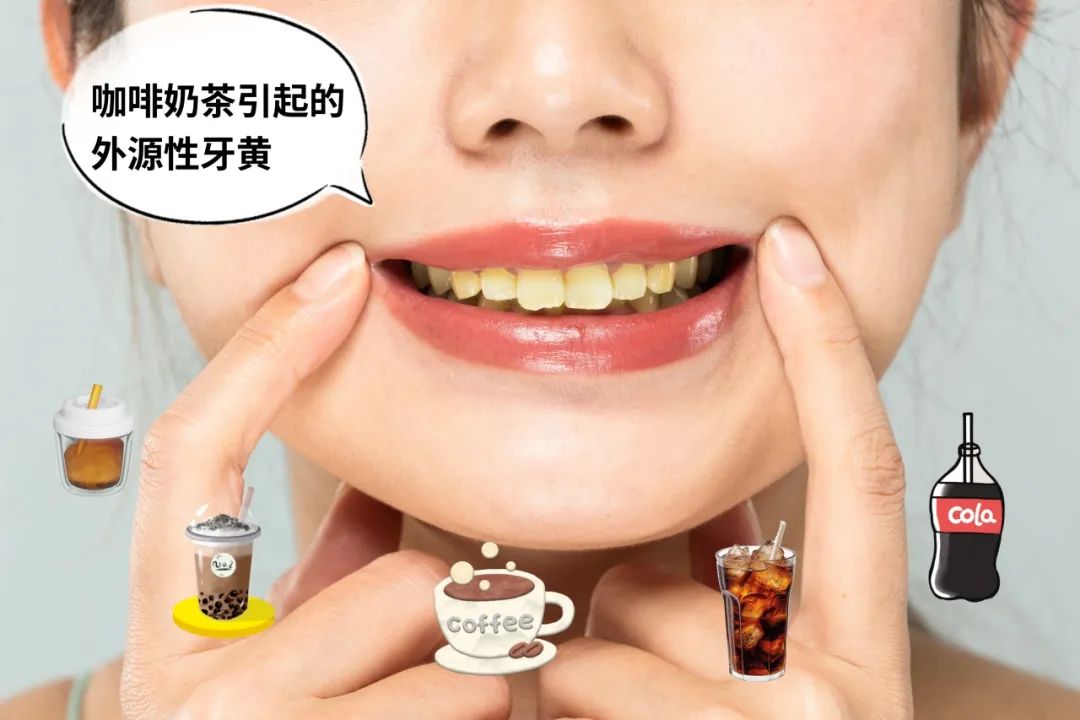 闺蜜说,她之前也是牙黄,去看了牙医才知道,可乐、咖啡、奶茶喝着爽,但容易有外源性牙黄。