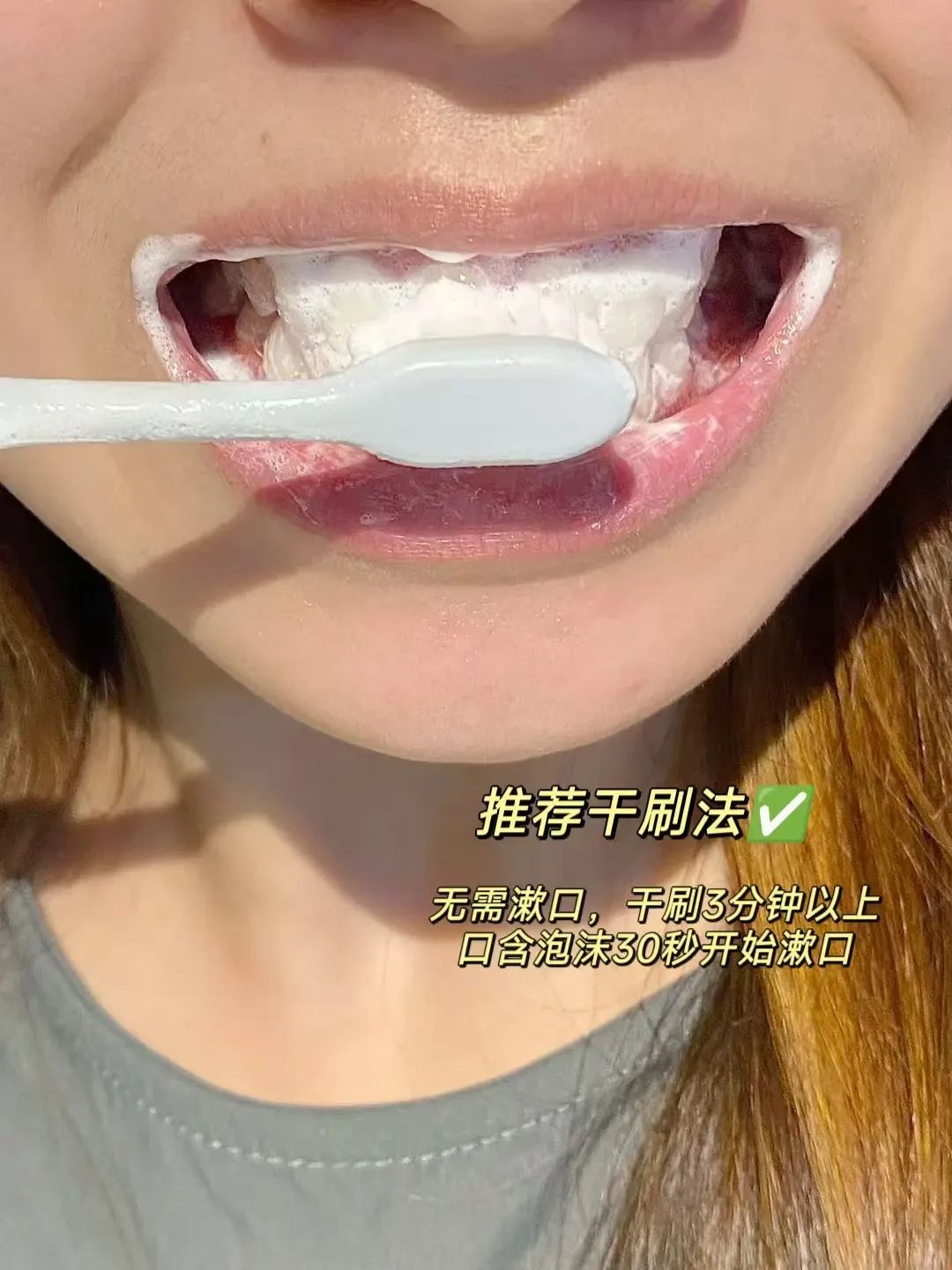 红印牙膏更推荐干刷法,刷牙前无需漱口,将牙膏挤到牙刷上,干刷3分钟以上,刷出柔和泡沫,口含泡沫30秒令成分发挥作用。8