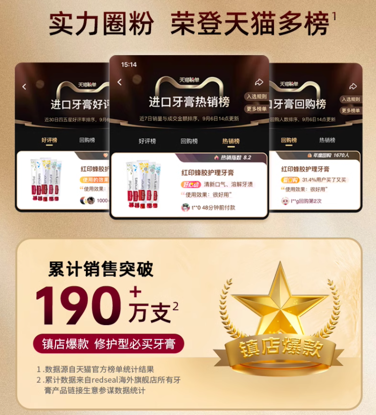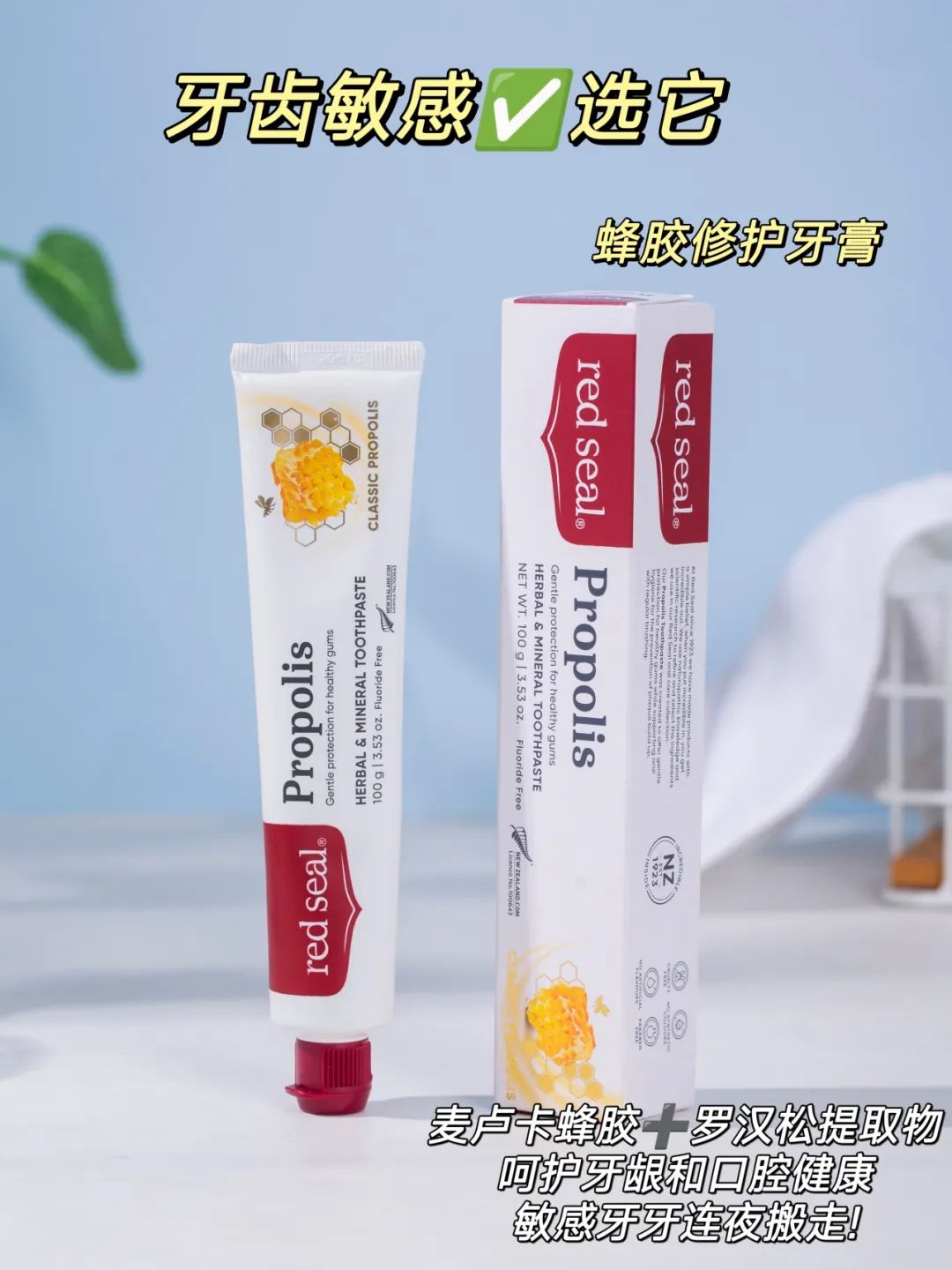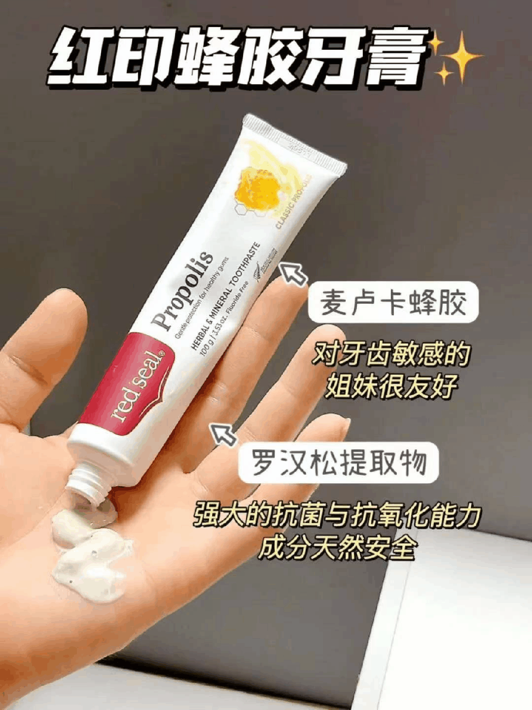 麦卢卡蜂胶,上万支蜂群一年仅产约100g的蜂胶,红印牙膏添加的就是麦卡卢蜂胶,修护k菌力超强!