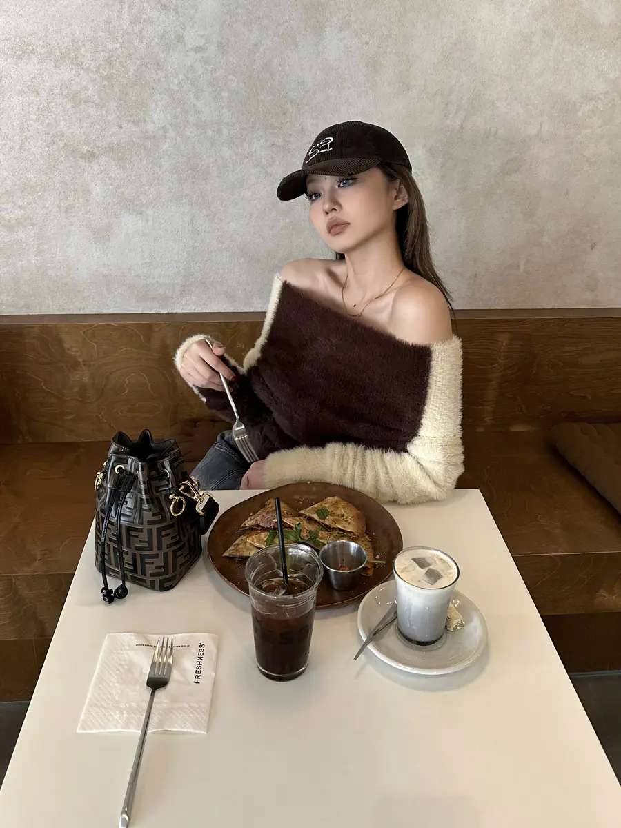 新品上身 | 气质探店look✨露肩针织尽显拍照氛围感!