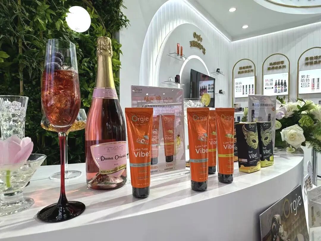 吧台上,高潮液产品整齐排列,透明的瓶子里,液体在灯光下闪烁,就像一杯杯精心调制的鸡尾酒 ,凑近细闻,还能捕捉到香甜的气息,瞬间勾起参观者的好奇心。