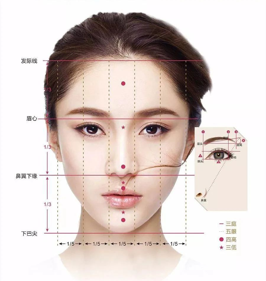 每个人的长相不同,修容的标准也有很多。但是最实用、最靠谱的方式就是一切向标准脸型靠拢,哪里不够补哪里,哪里多了,“削”哪里!