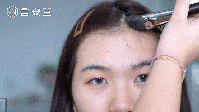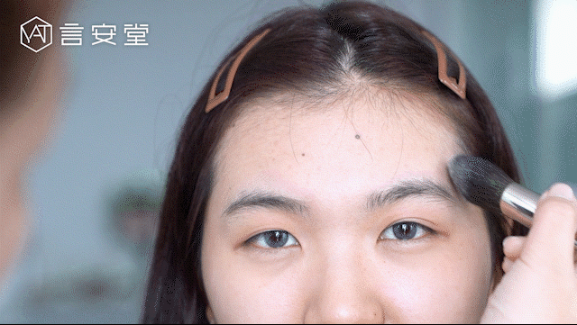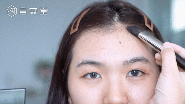 ▲ 上额比较平凹的仙女,可以在中间部位扫些高光,用白一个色号的粉底涂抹在前额部位即可。
