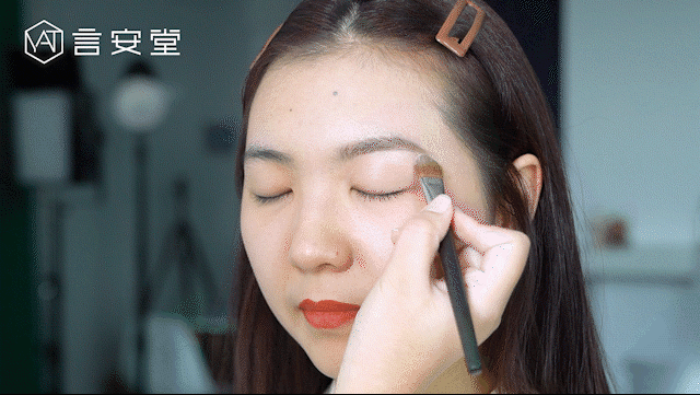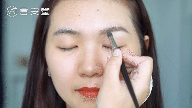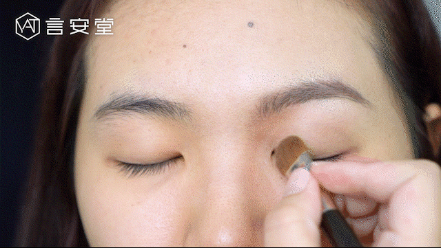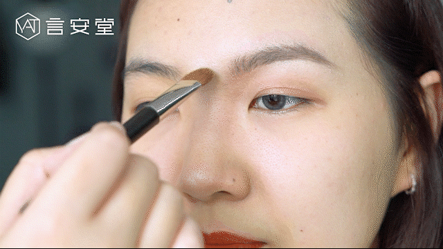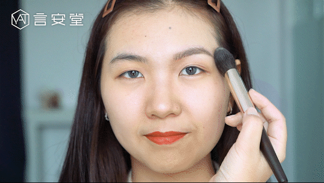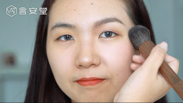 错误:如果刷子是刷头涂抹,容易把粉卡在毛孔里边,让某一块显得特别深,应该用刷腹来修容。