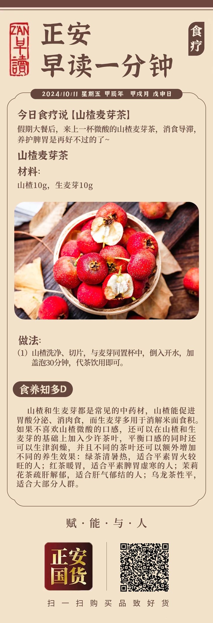 10月11日 应季食方【山楂麦芽茶】消食导滞
