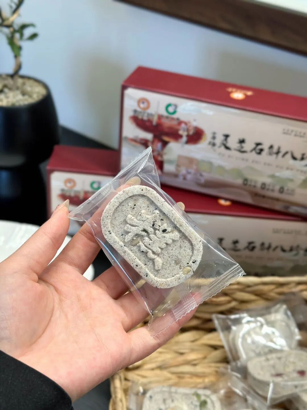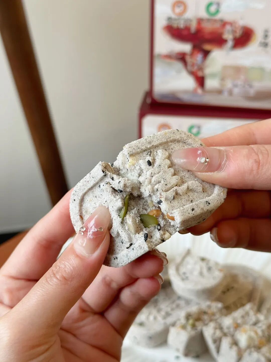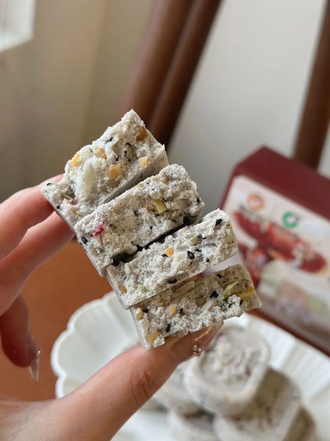 刚出炉的富硒灵芝石斛八珍糕,混合着米香与各种果仁香。