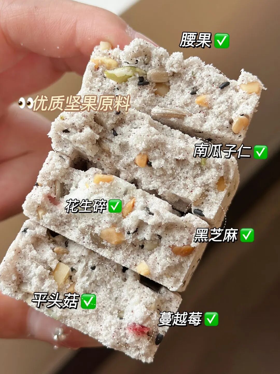 还有多种坚果果干,不仅丰富口感层次,还能增加饱腹感。