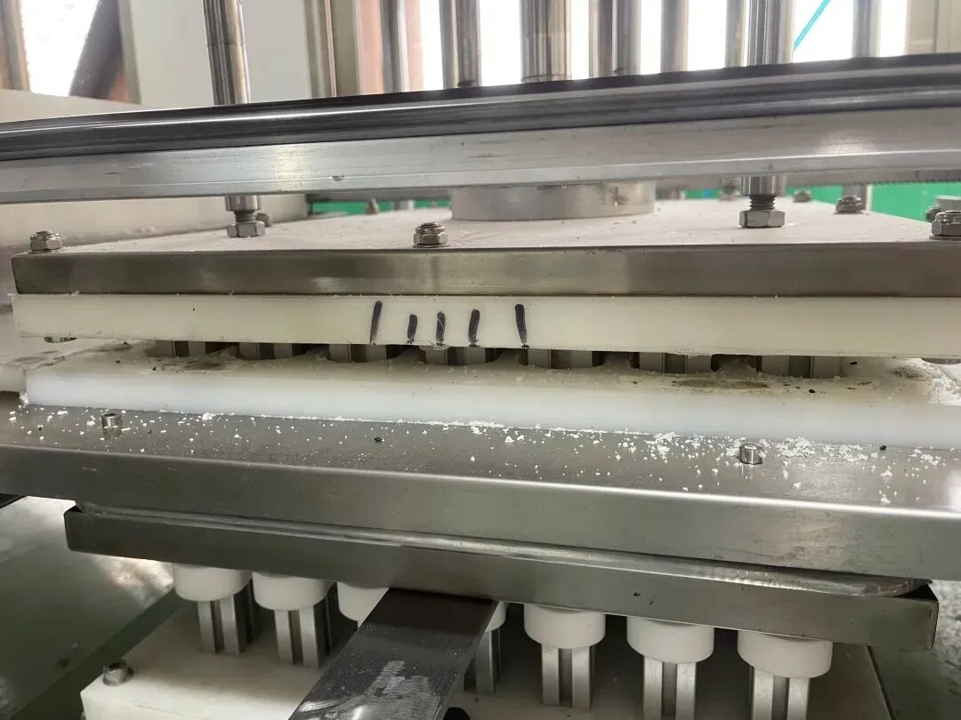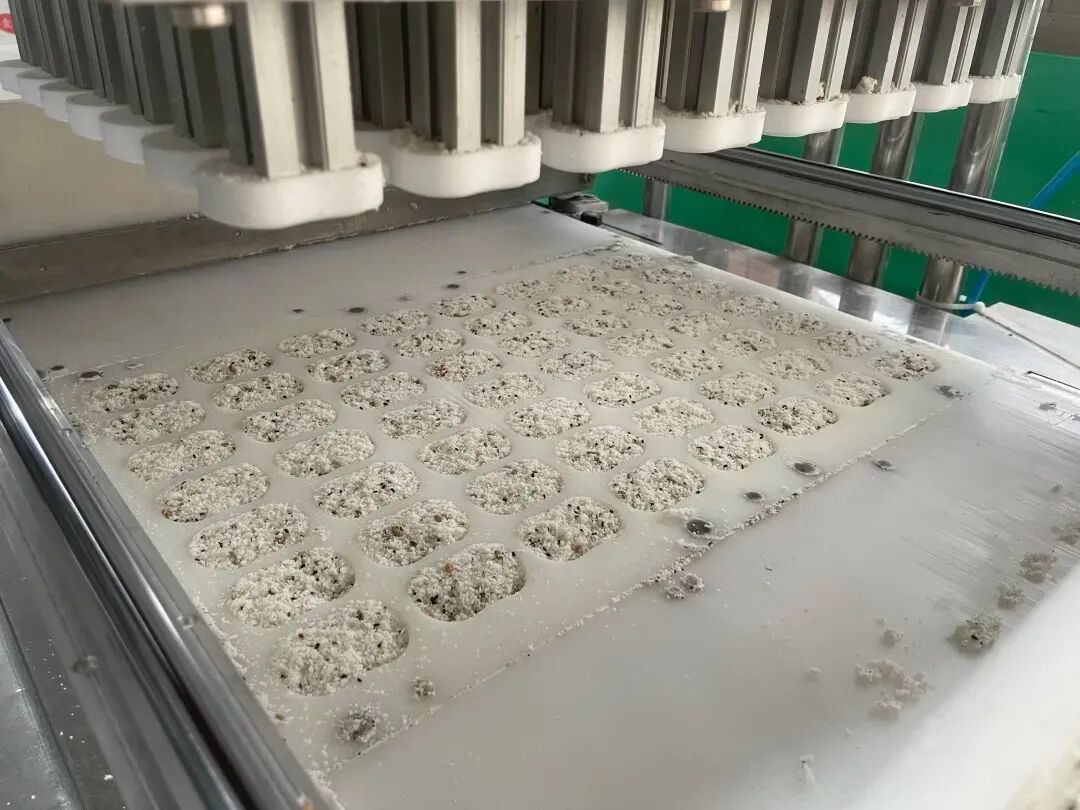 然后将料体分别灌入专门定制的模具,由机器完成压制步骤。