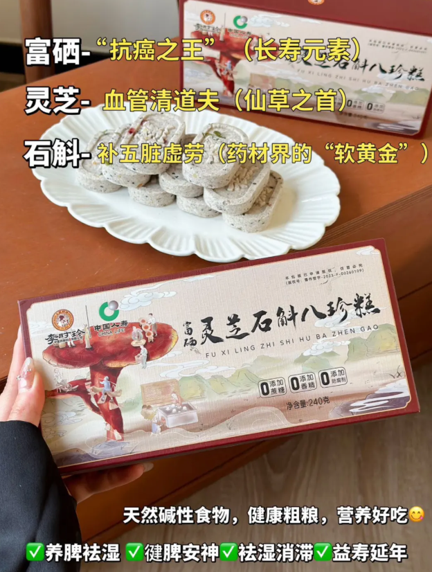 今天就给大家安利一款高端养生好物——李时珍・富硒灵芝石斛八珍糕,每天一块,祛湿补阳,嚼出好脾胃、好气色!