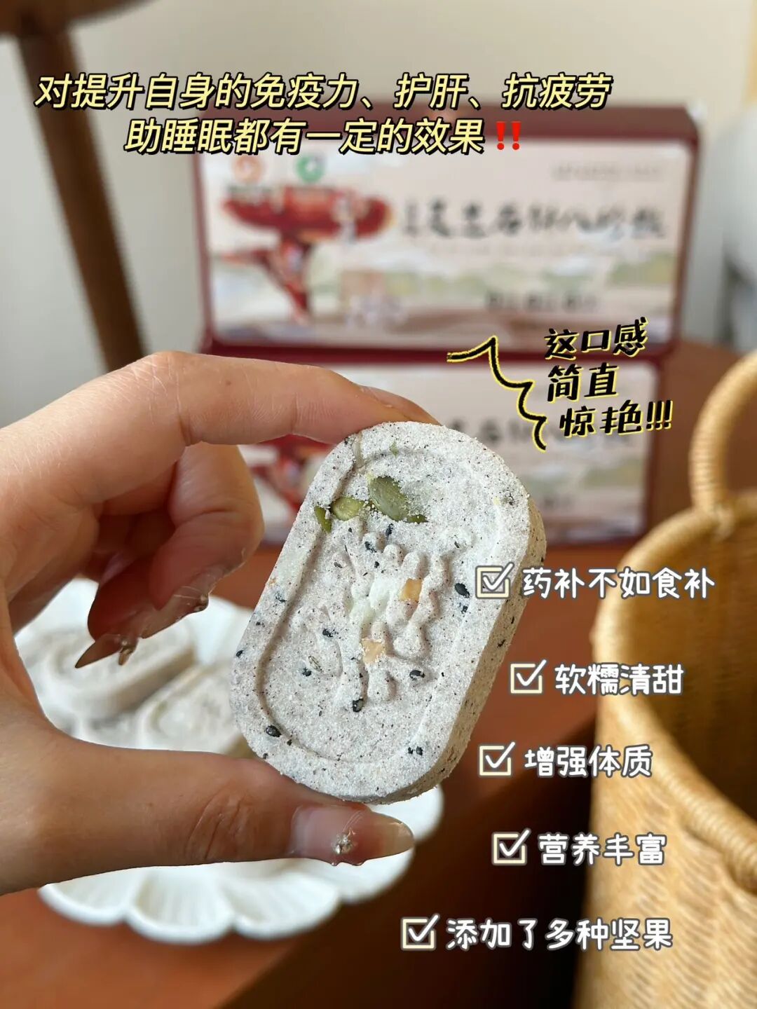 同时还能保肝护肝,对于经常熬夜、应酬繁多、肝部负担重的人来说,每天吃一块,疲惫感能慢慢缓解。