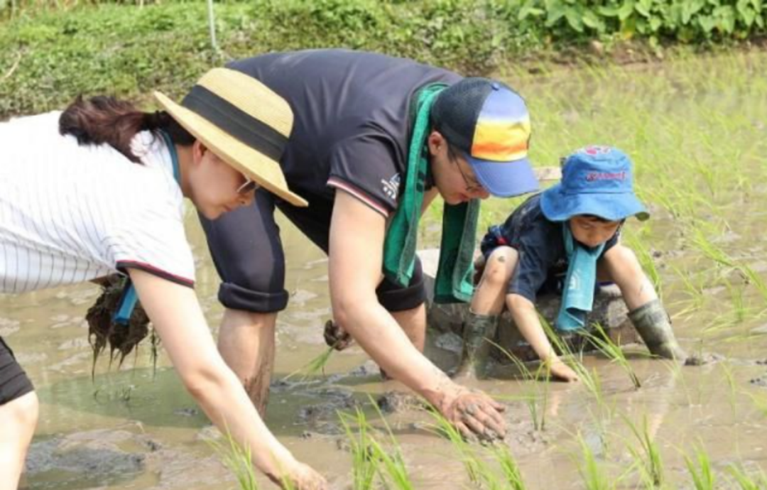 带孩子下田插秧,体会劳动辛苦的同时,培养探索精神;