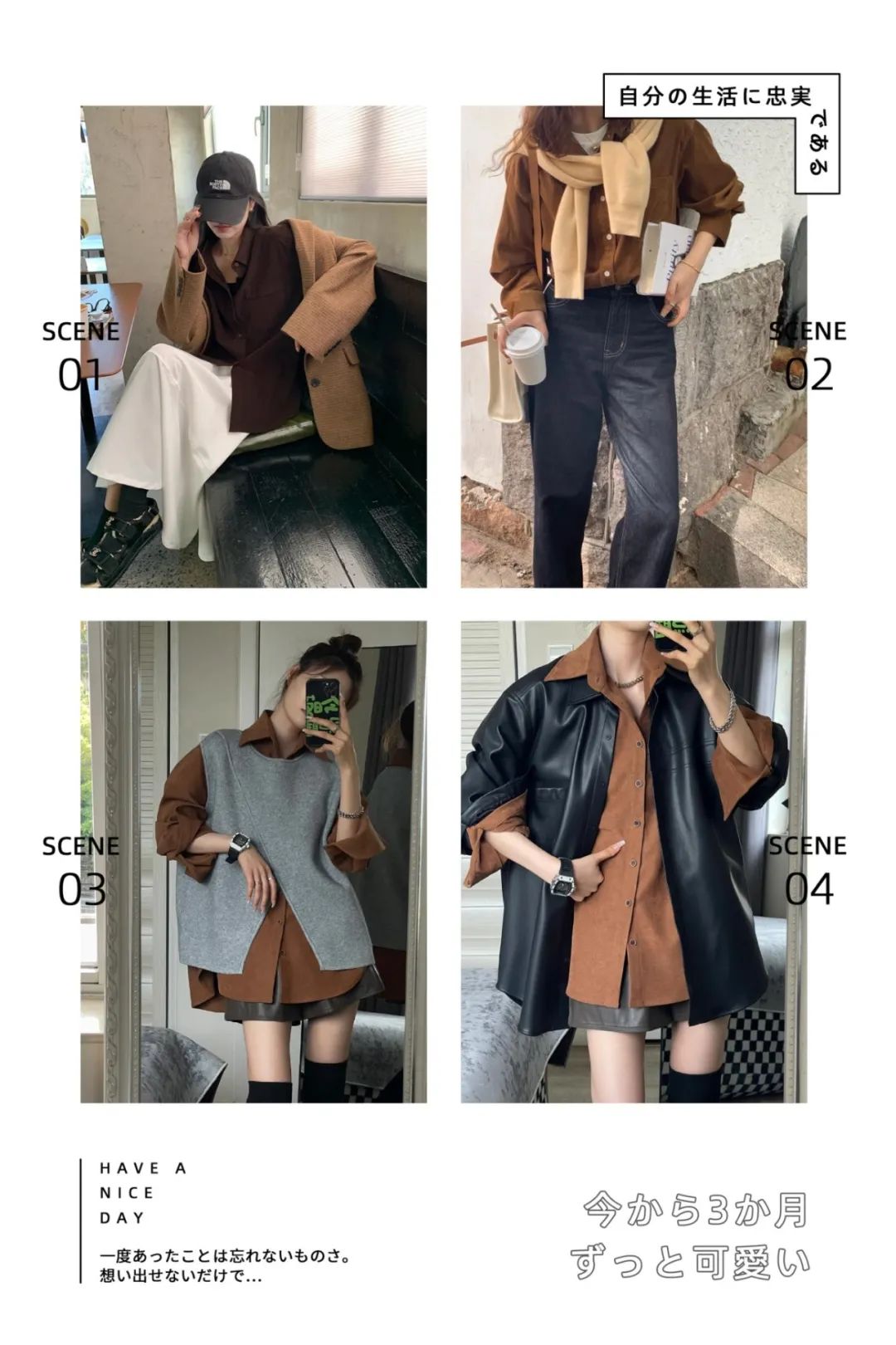 咖色比较经典复古,米白色就少了一点凌厉感,同样都很有秋冬氛围~
