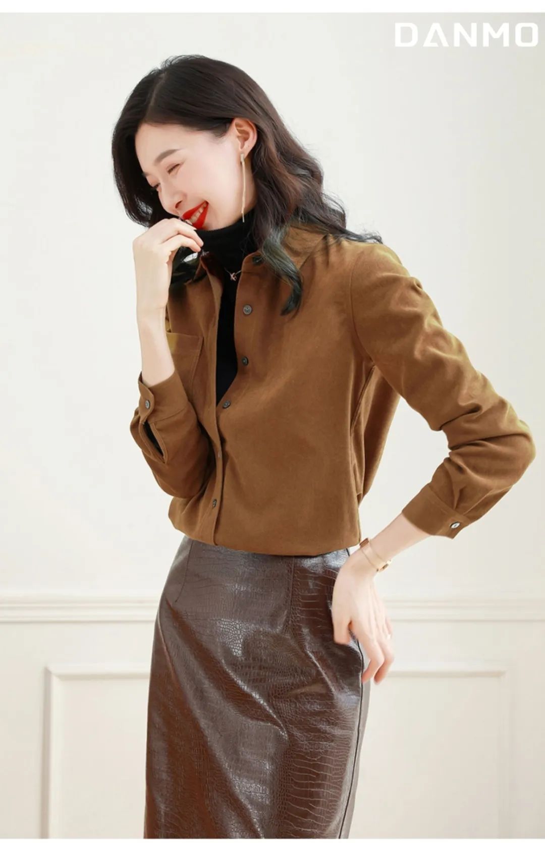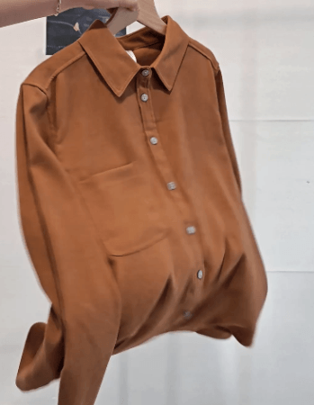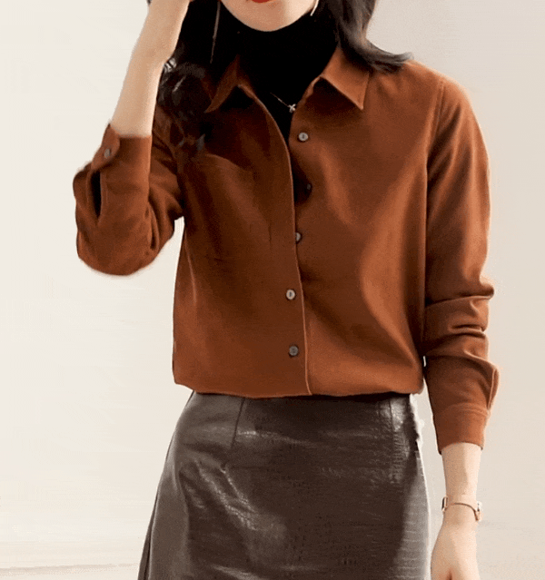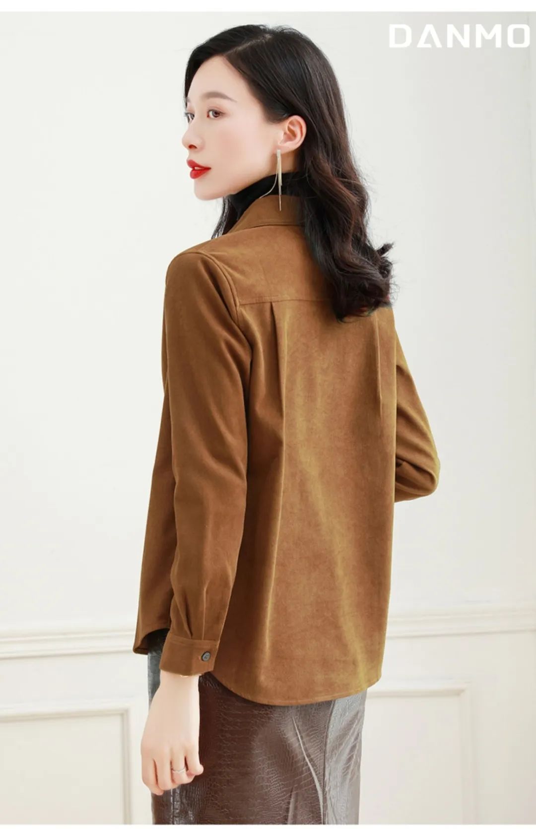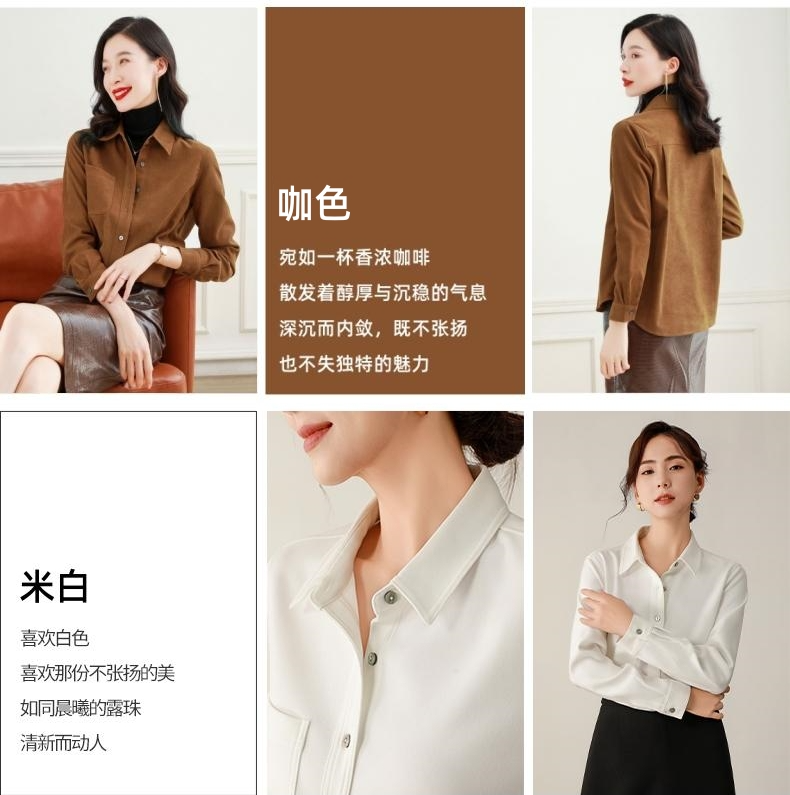 这件衬衫是很复古的磨毛款式,从外形看简约大气还有点小外套的感觉,当成打底或者穿在外面都很显瘦!