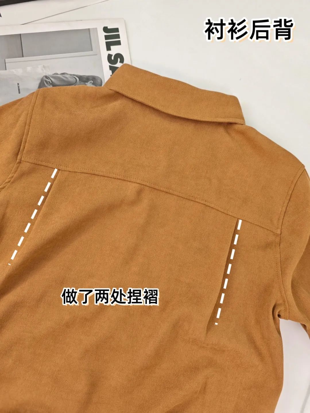衬衫后背做了两处捏褶,整体看着非常有层次感。