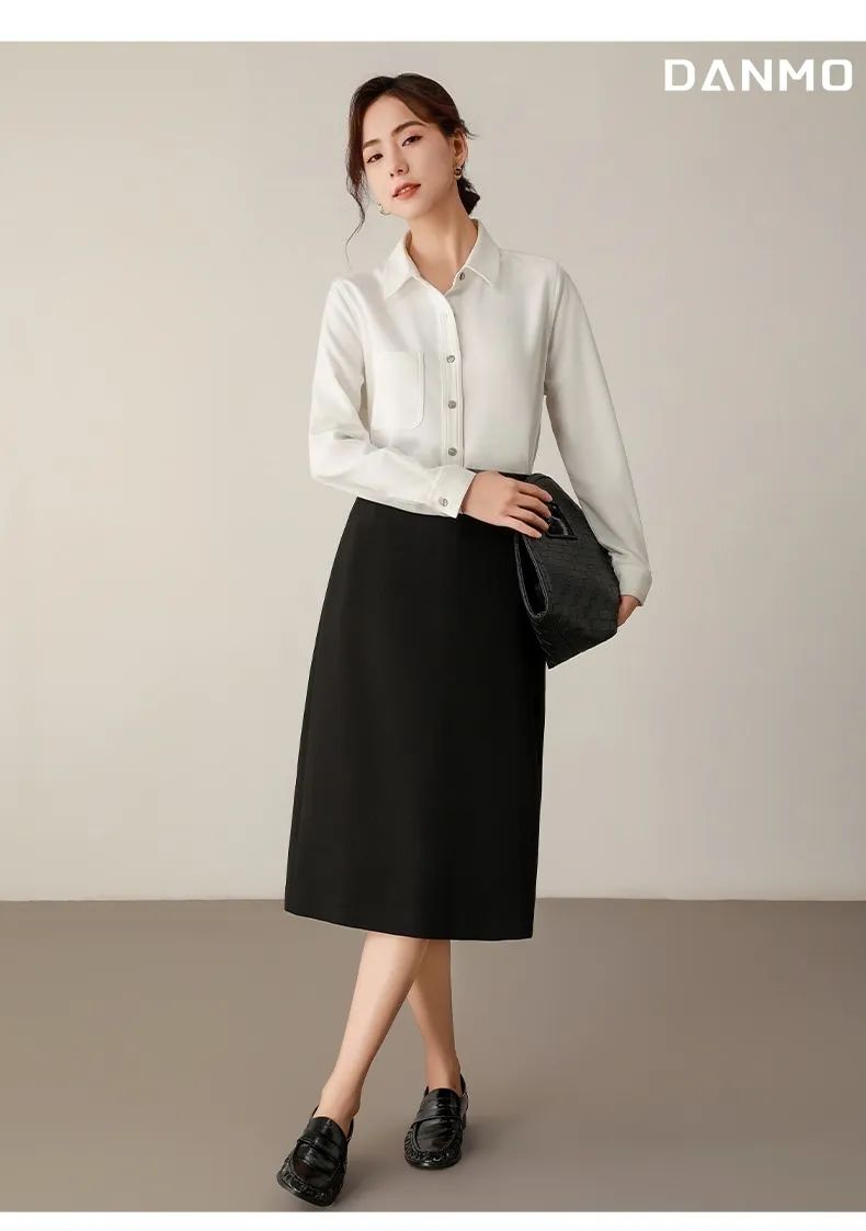 衬衫长度恰好到臀部的设计,方便变化出多种造型。